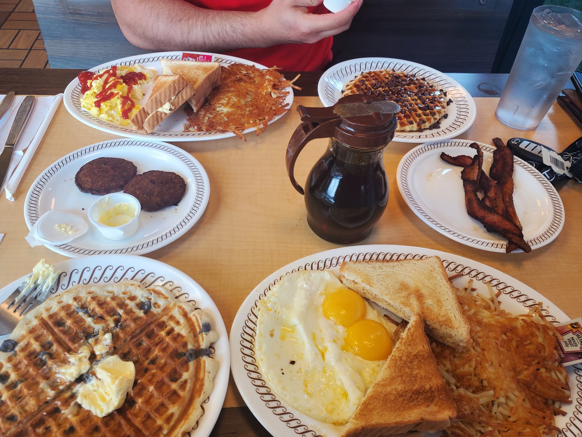 Read moreCame here on a Saturday and I was very impressed with this location. Having eaten at Waffle Houses all over the country and at all hours, I have to say that this was an exceptional experience with wonderful employees and darned good food. Our waitress, Kimm (with two M's) was great and she made us feel welcome in their place and I truly appreciate that. I got the chicken hashbrown bowl with fresh tomatoes on it (which I had never had before and LOVED) and she brought me salsa too. Man was it GOOD! This place had ample seating, wide isles for wheelchairs and such, and plenty of parking. They were covid cool and super friendly. I will definitely be going back there and hopefully Kimm will get some props from this too because she was EXCELLENT. All the staff made us feel welcome and at home and that is truly what makes Waffle Houses a must stop when I am traveling. Well done and thank you, 2021 E Blue lick Rd...