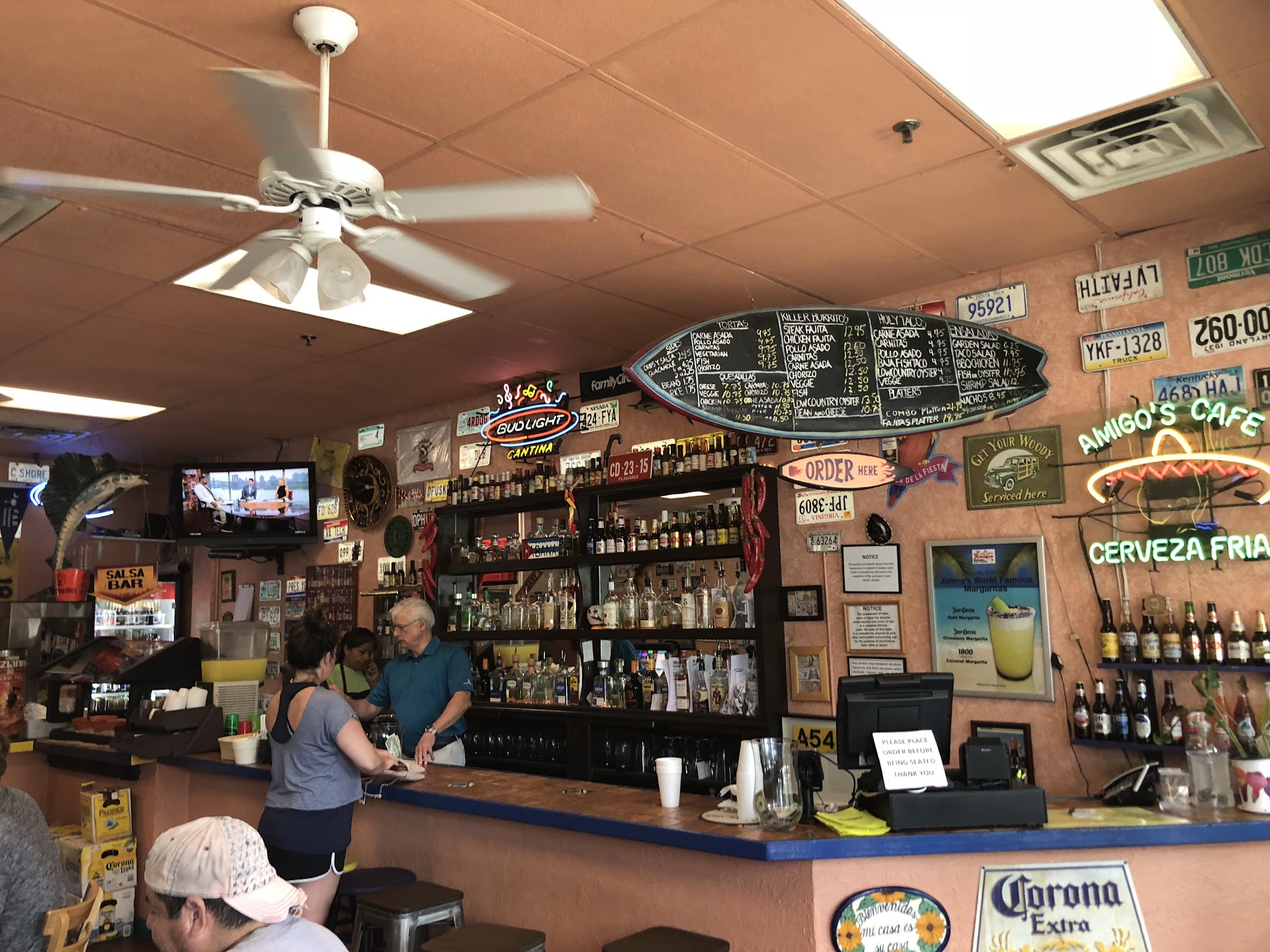 We eat here every Saturday immediately when we get to town for dinner (after checking in and bringing up our bags). It’s our little tradition and we love this place. The food is always good, so it’s consistent. The staff is friendly and helpful also. We (my husband and I) usually get queso, salsa and guacamole with chips for an appetizer. My husband gets the barbecue chicken burrito, which is the size of a newborn baby btw. My go-to is the shrimp salad. It’s so good. Sometimes I switch it up and get the barbecue chicken salad or the fried oyster burrito if I’m feeling frisky. The margaritas are also good. My favorite and go-to is the coconut margarita. If you want something unleaded (non-alcoholic beverage) there is ice tea, soda machines and a super yummy punch or pink lemonade goes well with your food. It’s made in house, so it’s not Hi C or something out of the soda fountain. We love this place. We’ve never had a bad meal or negative experience here. It’s also clean and the food comes out usually pretty fast depending on how busy it is. Bit even then it still comes out in a timely manner, especially after a long travel day and you are probably tired and hungry. The inside is really small so there is only a few tables inside and some outside. It is also counter service where you order at the bar and register everything then go sit down and staff will bring you your drink from the bar if you order one and your food. This place is pretty popular and theee may be a line to order especially at dinner, especially during peak...