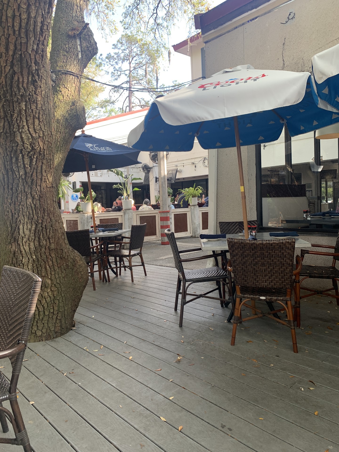 When we arrived, there was an hour wait to sit outside and immediate availability for the inside. However, we were able to grab a first-come first-served high bar table outside right away. There was live music playing and the weather was beautiful.