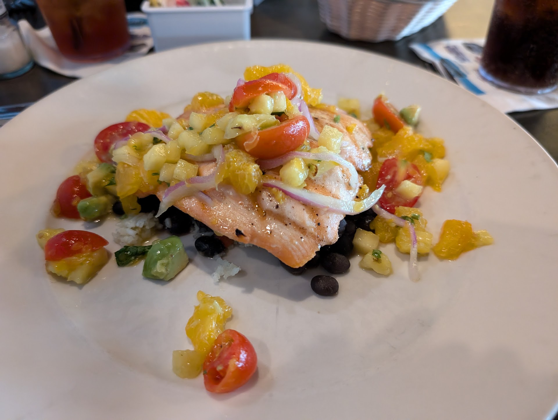 Our entrees arrived very quickly. However, as seen in the photo, my crab cake was very overcooked on one side. I asked for a new one and Sean quickly brought two more that were cooked much better. I also had to ask for both butter and sour cream for my baked potato. My husband's came with butter on it.
