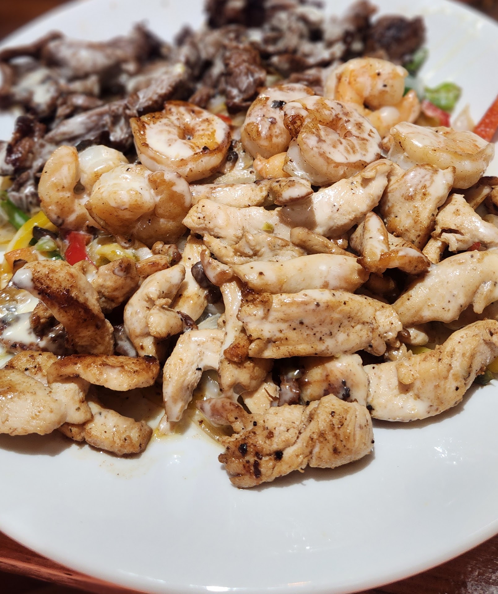 I then ordered the Texas fajitas, it came with three small tortillas, not enough for the portion of food it was served with, a small amount of lettuce, two small slices of tomato, etc., and absolutely flavorless beens and rice. The Coup de grâce came when I tried to eat the obviously frozen shrimp, and the rubber band "steak". At this point I stopped and didn't even bother with the chicken. I would like to say I very rarely send food back, however, this was one of those times.