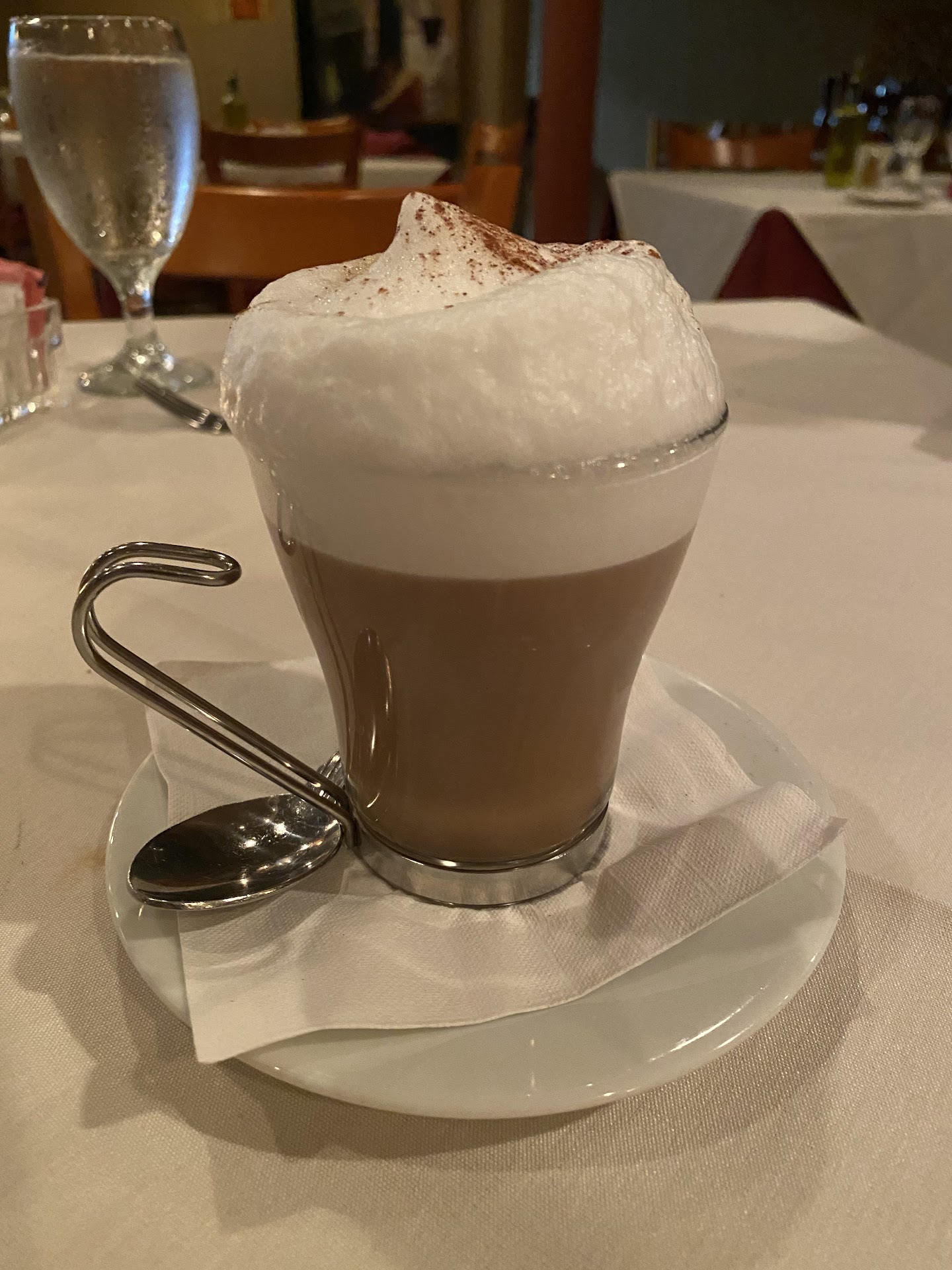 My wife and I were in town due to my work possibly transferring me to our Savnnah office. After I got back from work, I said let’s get some food. We got ready, and went to find some food. Totally we’re thinking something else, but when we stopped someone who just left, informed us of how amazing it was. On the Pricier side, maybe, but it’s so worth it. We didn’t know we needed reservations, but they were able to get us in. Once sat down, they were amazing with their service, knowledge and just pure friendliness. Refills were on point, the drinks were amazing, the Bond martini, the cosmo. We were delighted by the specials. Lobster ravioli, a calamari, and such. The sauces were rich, but decadent. The food was filling, but not stuffing. The tiramisu was absolute amazing, and my wife loved the key lime pie (and I’m not a major fan of key lime and would buy it over and over). If you’re in town, please get reservations! You won’t regret it. Not to mention, the cappuccino was amazing as well (sorry that’s the only thing I got a photo off!)