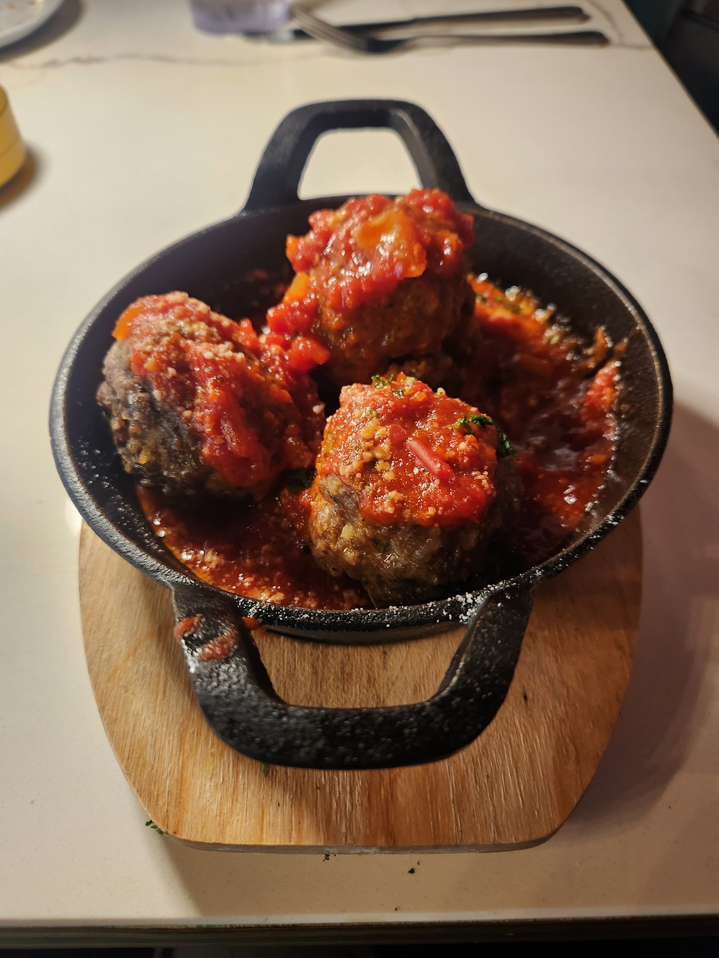She recommended that we try the meatballs - which we did. Clearly homemade, Dense, but tender. Well-seasoned meat that was not overpowering.