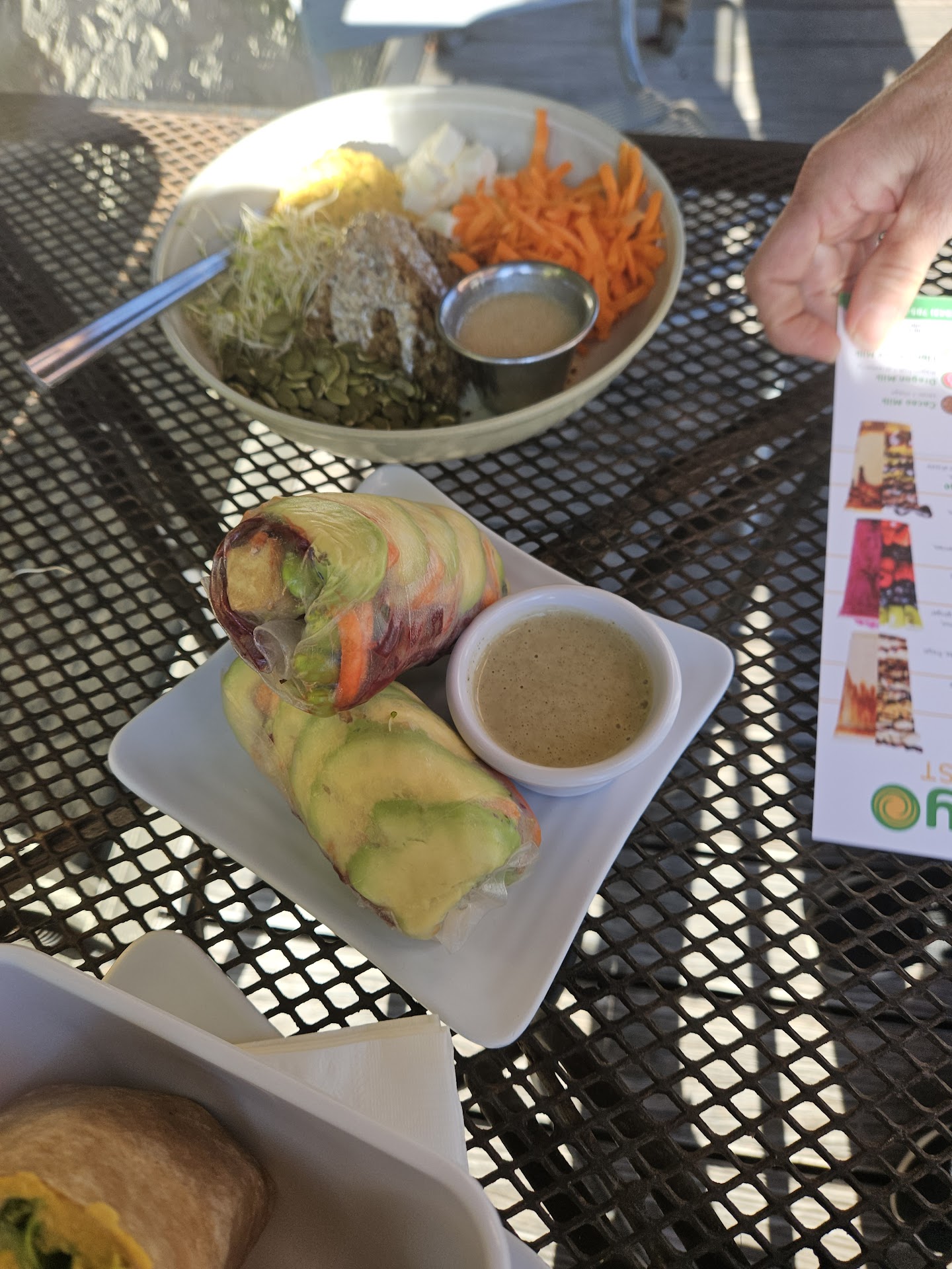 I tried the So-Cal Wrap and it instantly became my favorite! They made it gluten-free for me with a rice paper wrapper. I enjoyed it for breakfast many mornings âșïž The Salad Sampler was my next favorite.