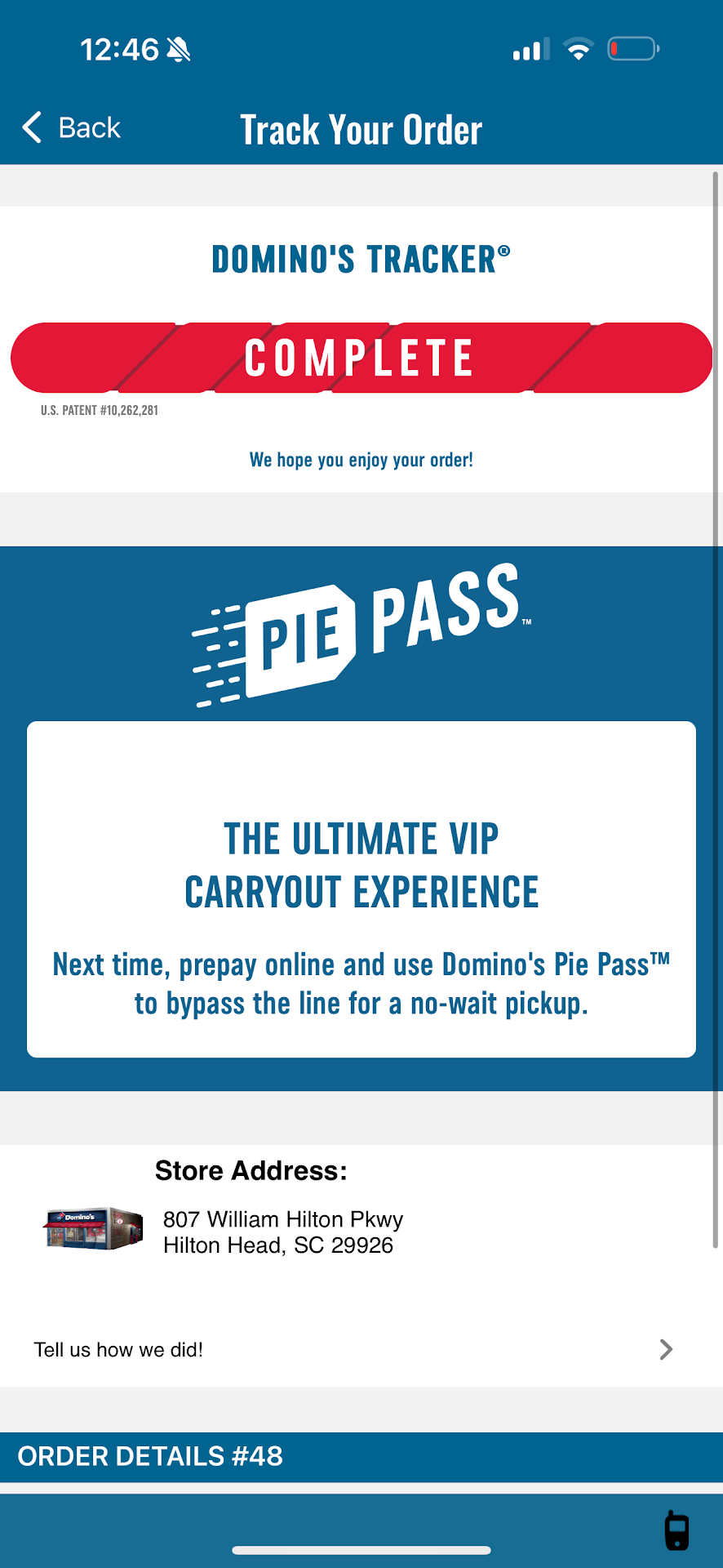 The customer service we received tonight from this Dominos was amazing. If anyone is ever in Hilton Head SC , I 100% recommend ordering pizza from them. We have so much pizza left over it’s crazy 😂 but thanks for the extra pizza...