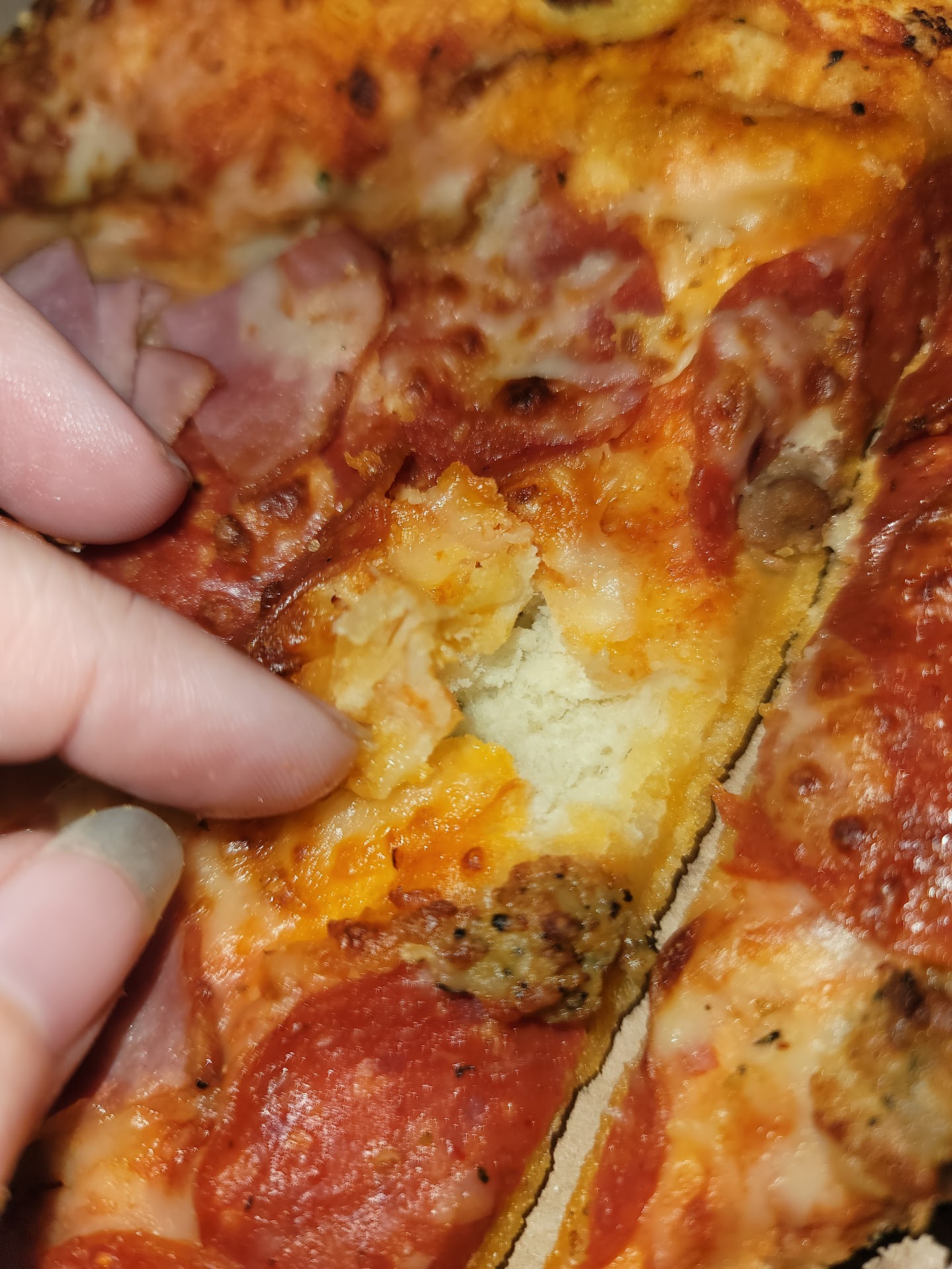 ..and to top it off, my second pizza (Pineapple, Banana Peppers, Grilled Chicken), you guessed it. It was made wrong as well, someone having also added Pepperoni into the mix. Really?!?