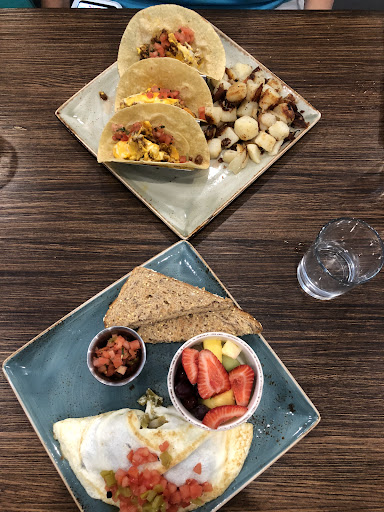 Read moreMy wife and I tried this restaurant on Sunday after church. The place was mobbed. I was told we would have a 35 to 45 minute wait. I was invited to enter my phone number and would be notified by phone when our table was ready. A text appeared on my phone inviting me to download an app called NoWait. The NoWait app informed me of our place in line while we waited. Exactly 40 minutes after I signed up I received a text informing me that our table was ready. We don't normally wait this long at a restaurant, but the wait was pleasant since we had complimentary coffee and a pleasant conversation with a couple from Moss Creek. After we were seated, a waitress promptly took our order. It took another 30 minutes before we were served our food. I ordered “The works” omelette with coffee and my wife ordered half salad and half sandwich, plus a cup of vegetable soup with sweet iced tea. The food was plentiful and delicious. Although the menu didn't mention it, my three-egg omelette was served with a medium-sized mixed green salad. Our server was friendly and attentive. The store manager came to our table to introduce himself and inquired as to our overall satisfaction. Summary: This was a new restaurant having first opened the week before. Our bill came to $29.35 plus tax. Based on the quality of our meals and the good service, this was a good value. While the wait was long, our overall experience was a positive one. I suspect after the staff has had more experience and the newness has worn off, Sunday noontime wait times will probably be shorter. We...