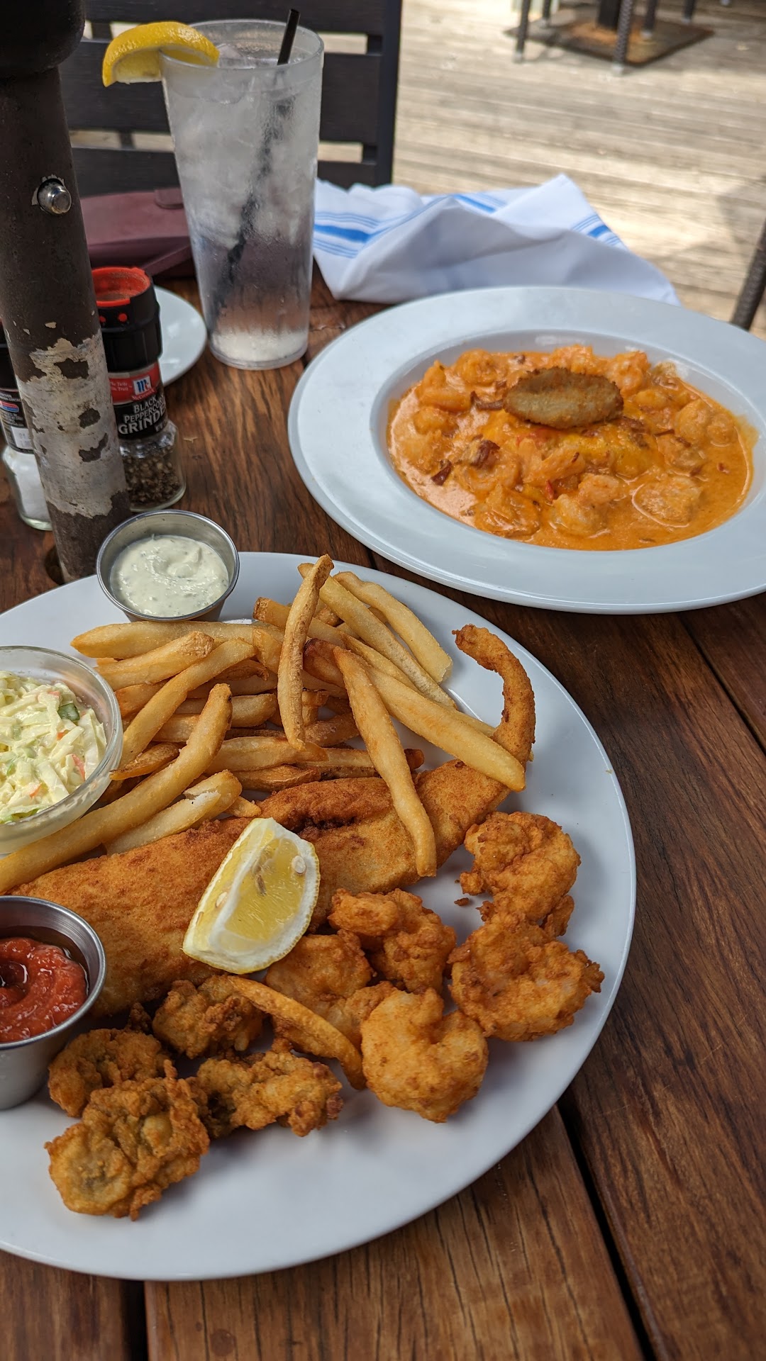 Read moreMy wife and I had a delightful and delish lunch at Fish Camp. I had the basket with fried flounder, oysters, shrimp, coleslaw, and fries. Everything was light, fresh, and well cooked. The only exception were the fries that were kind of dry. My wife had the the friend green tomatoes with shrimp and polenta. It was also delicious. The staff was friendly, attentive, and efficient. The only complaint with that dish is that I wish there was more than 1 slice of fried green tomato. We both agreed that we will be coming back. I definitely recommend you give it a try.