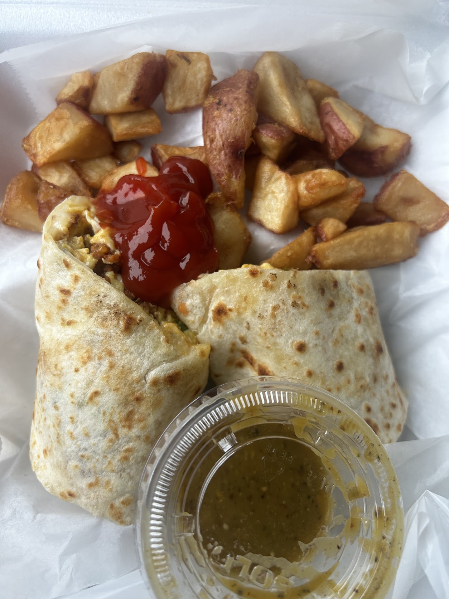 Breakfast: 2/17/25 - rode bikes on day off to grab late Breakfast. We had heard about how good they do breakfast and it did not disappoint, I had the Traditional Bennies w Hash Browns and Grits, wife had Omelette w Cheese Onions Green Peppers and tomatoes w red potatoes and English Muffins. Letty was our very cheerful and pleasant server and she asked if we would like hot sauce with breakfast. We said yes, and expected to see Franks or Tabasco or something from a bottle. She came back with a small pour of a green/yellow colored sauce. It was really a nice compliment to the hash Browns and the red potatoes and omelette. So good I had to ask Letty what it was, the answer was its house-made “Tomatillo”. That alone is worth coming back for, but really everything was great. Attached photos from dishes and sauce.