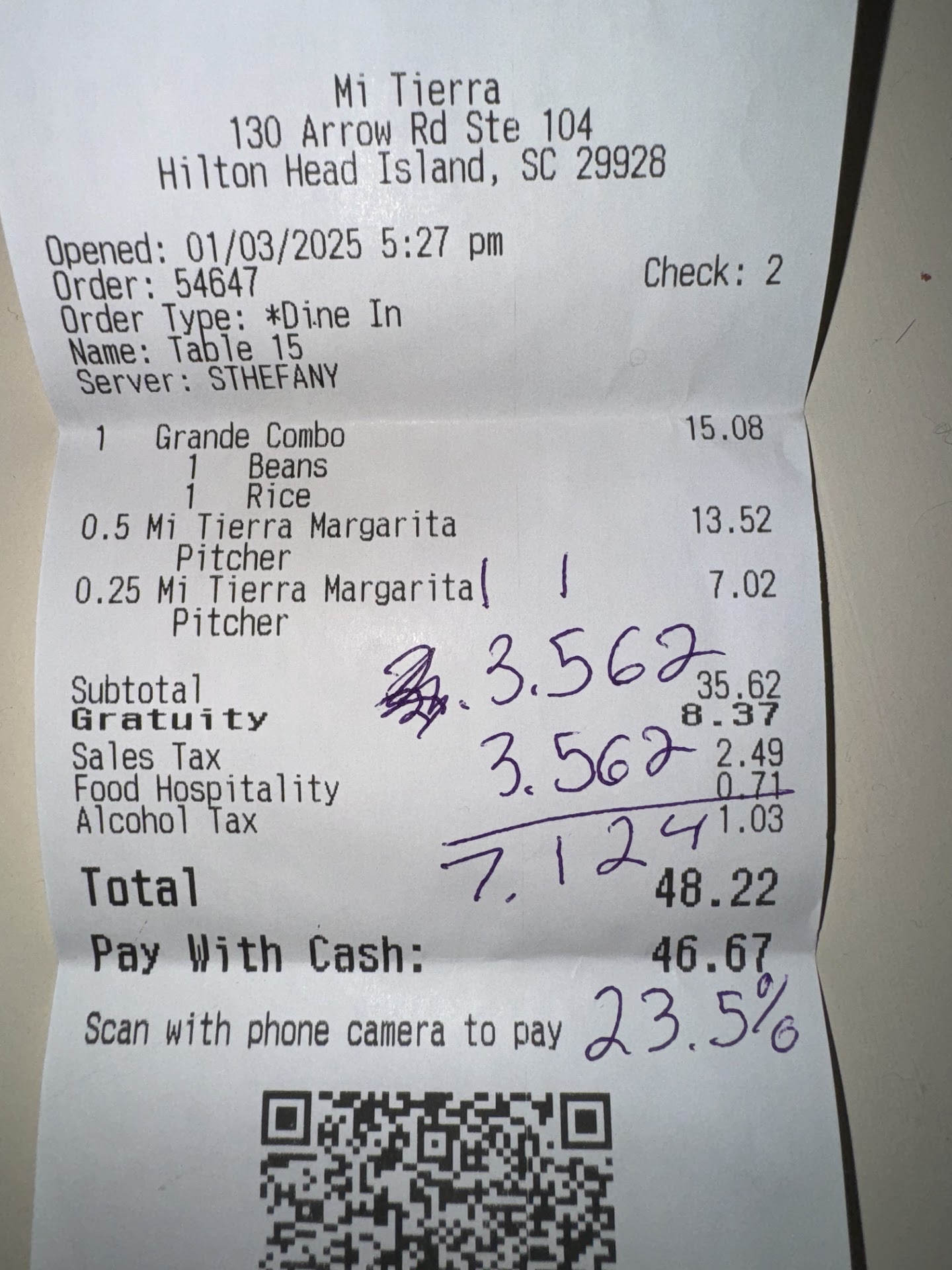 DOUBLE CHECK RECEIPT FOR SCAM! Have been going to mi Tierra for almost 10 years now and have never had an issue like this, but with how this scenario was dealt with, I am genuinely upset enough to have ruined my customer loyalty and write a review. After a normal dinner (4 people) everything seemed great, but when we received our bills we noticed a gratuity tip included. Thinking it was a bit odd we did the math and it came out to 23.5% which I have never seen before. After asking for a menu it said 6 people and above an 18% gratuity would be included but we were 4. So I asked for the server (Stefany) and we watched her go into the bathroom. After 15 minutes of cat and mouse with her colleagues trying to get her out of the bathroom she finally noticed we weren’t leaving without talking to her. She then proceeded to say how it was only 21% included and that it’s normal for gratuity to be included. We all knew that this was complete BS because we did the math and we all have worked in food and beverage. After getting the manager he voided the transaction and took it off our bill. Stefany was no where to be found and all of the servers seemed to be chuckling and making fun of us about the situation which is really why I’m most upset. When asking the manager about why she did that this was his answer verbatim “ usually drunk people don’t tip so we put it on for them” which was so shocking that he blatantly admitted to this scam. At the end of talking to the manager Stefany came over and I asked what we did wrong for her to treat us like this, and she acted clueless and gave a snarky remark “next time I am ID’ing” which we found comedic because it’s her job to ID people as she is admitting to serving without doing so and we were all above the drinking age. If Stefany would have dealt with the situation like an adult and apologized for the mistake we would’ve left 20% and called it a day. But since that is far from what happened I had to let...