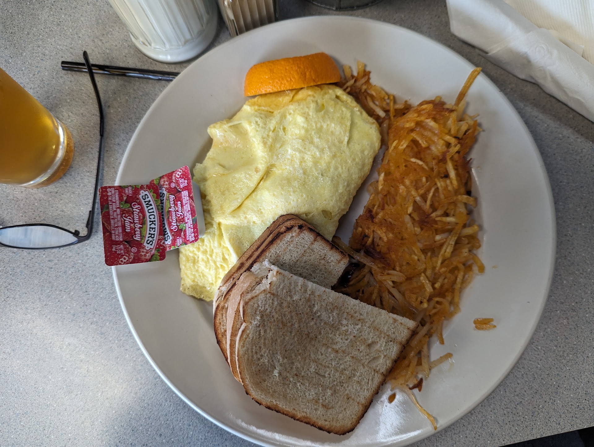 Menu says egg sandwich on a kaiser roll. It came on a Sysco hamburger bun. When I asked the waitress about it, she said, "...yeah. I don't know why the menu says that." She did offer to bring me some other type of bread. Not sure how that would have worked.