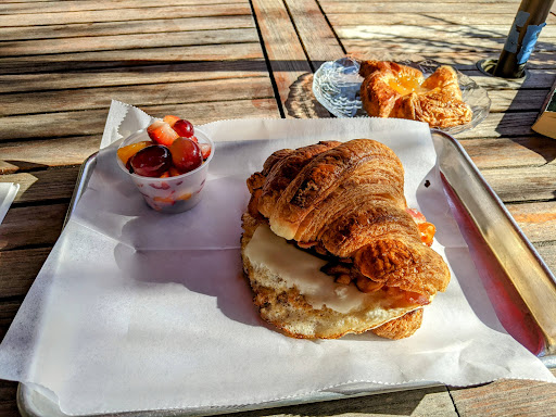 Read moreGreat fresh food. The breads are delicious and they have a rotating menu based on what's fresh so expect seasonally related items. Small selection of cakes and pies but nice myriad selection of pastries (try the ham and cheese for a hearty breakfast) and giant cookies when available. What they have for the day is what they have but they take advance orders for parties and what not. Pizzas now available and they look good but have yet to try since I can't resist their club sandwich. Bar with beer and wine and they've applied for a liquor license so fun awaits.