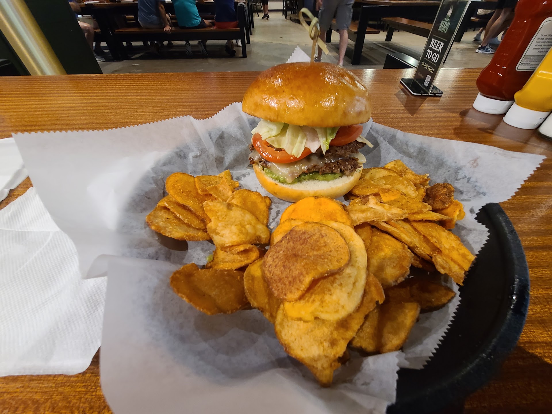 There was much to like about The Bank. It's a very attractive location with a casual vibe. There is ample indoor and outdoor seating. Fire pits and overhead hanging lights make for a nice outdoor evening atmosphere. The quality of the food is quite good. The people working at The Bank were all friendly. The place is clean, including the bathrooms. I also appreciated that when I ordered a water with my meal, it came in a full-size beverage glass. So often, water in counter-service restaurants come in cups that are tiny and flimsy.