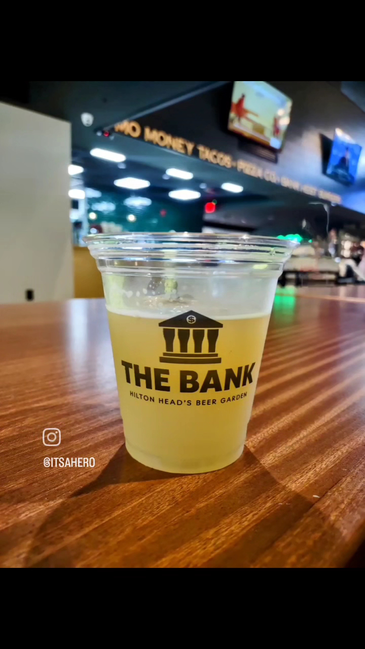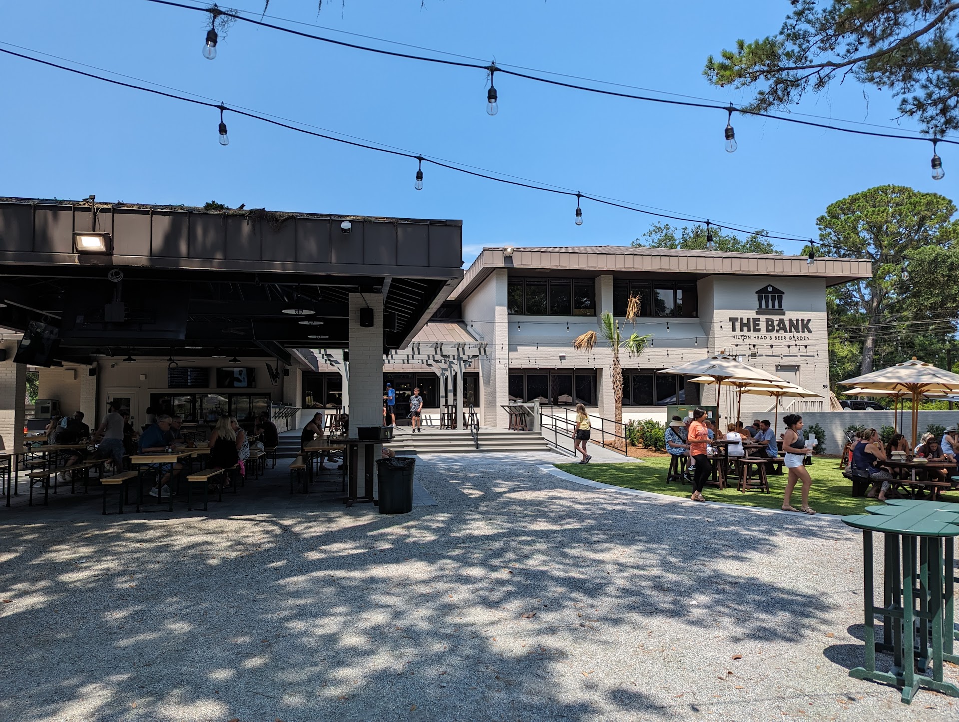 My son and I visited The Bank on Father's Day about 2:00 in the afternoon. We had wanted to try this new place even before they opened based upon "opening soon" articles we had read in the Island Packet. On this particular day we didn't have to deal with large crowds. Quite the opposite. There was plenty of seating both inside and outside and the line to order was short.