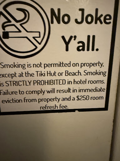 Read moreHad lunch when we arrived from the airport and settled in. Food wasn’t great, but our expectations weren’t that high. It’s bar food after all. Came back in the evening and I noticed 2 men across the bar vaping. I politely still asked if I could vape and was told “no”. I complied, even though I was still stuck watching other patrons vape. Our hotel Beach House has a strict “no smoking/vaping” policy and even posts a sign on the hotel room door that the only 2 places you can vape are the Tiki Bar and the beach. So they need to get that worked out. Lol This 5 star review is for a young man named Cain. Cain ran the bike/beach chair shack for the Tiki Hut when I spoke with him Monday morning. He gave me great info and explained the pricing and I told him I’d be back the next morning at 9am. We had been using the pool for the week and wanted to now try the beach. The next morning Cain set up our chairs for us and told us the beach server would be available in 45 minutes. Not seeing anyone after 90 minutes, Cain came over and told us the server had called out sick and he would be back and forth at the shack and as a server…which he never did before. He was fantastic! He was good-natured about the situation, got our orders correct and he was very funny. When we were leaving the manager walked over to us on the beach and almost seemed sorry about being short-handed, but we told him we had a great beach experience because of Cain and we also made sure we tipped Cain cash directly, so our tip didn’t go to the bar. Thanks so much, Cain! Keep up the great work! Best beach day in a long time! PS: if you’re staying at Beach House and or hitting the tiki bar, bring koozies; the beers get...