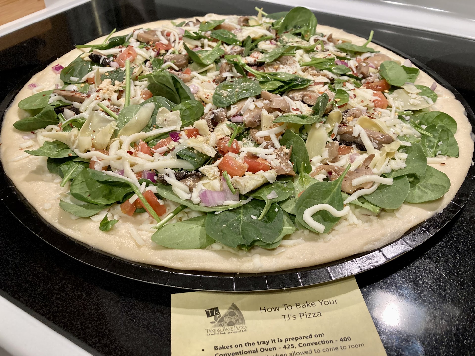 Crust is amazing, sauces and fixings excellent and always fresh. TJ's Take & Bake Pizza beats all other pizza's hands down... whether fresh or made in some store and delivered.