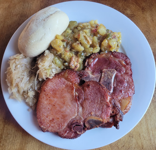 Husband and I are what some may call foodies. We recently moved to the area and kept hearing how āAMAZINGā this place is and that it is a must visit. When we walked in the owner looked at us, but a party of 5 was leaving. Each one stopped to talk and say goodbye to her. No big deal really, but then a group of guys walked in and as I was about to step back up to put our name on the list, she greeted them! They had a pager, but only 4 of the 6 were there. Then she spent about 5 mins talking to them about how she canāt seat them until theyāre all there and then suggested they go to the bar across the street to wait. She also bragged about having her wine slushee so she can hide it in her cup and walk around outside. It was clear she was buzzed from alcohol. Finally they left and we were left standing there. She walked back to the bar to look at the list without acknowledging us. I walked up to her and she asked ādid I put you on the list?ā. She obviously saw us standing there. When she asked for our name, I gave her my initials. She looked at me like I was crazy and kept repeating like it was the weirdest thing ever. Finally got a pager and decided to check out the āgrocery storeā while we waited. Barely anything there, but the cashier was very nice. While we sat outside waiting, the owner/manager pounded on the window behind us very loudly several times. The pager never went off, but she obviously thought this behavior was acceptable! We went back inside to get our table and without looking us in the eye, she held her hand out and grabbed the pager and mumbled table 3b (I think??) pointing in a general direction. I had to guess where she was pointing. We sat down at what was two tables that were pushed together. Our server quickly greeted us and took our drink order. We ordered the pretzel which was very tasty. He ordered the meatloaf with mashed potatoes and added a bratwurst. I ordered the creamy chicken with SpƤtzle and mixed greens salad. As we waited for our drinks and pretzel, the music was VERY loud and the owner used a microphone to yell at someone upstairs to āstop bouncing around on the POSā. Our food arrived and yuck! My āmixed green saladā was cold green beans, wilted iceberg lettuce in a somewhat creamy dill pickle brine. Our food was EXTREMELY salty, the mashed potatoes were obviously instant and the sauces (basically gravy) tasted like they bought a jar or at least the gravy mix from McCormick. My SpƤtzle was like wet play dough. The bratwurst came out about 20 mins after our meals. It also was not any good. Weāve enjoyed authentic German food. My company is German! This place, like others have already mentioned, is obviously taking advantage of people who do not know what real German food is like. Overly priced, sloppy and salty at best. The server was super awesome though; the only saving grace and the only reason Iām giving two stars. The owner/manager tanked it from the beginning and felt like she was saying a big fick dich to us. We tipped our server well, but we will not be going back unless it is under new ownership/management. Do not waste your money or time unless you happen to enjoy this type of food....