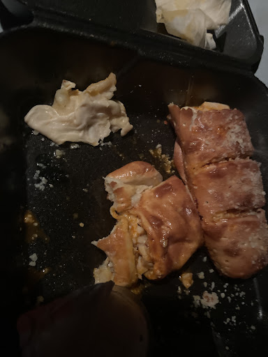 Their breadsticks are probably a solid 7.5/10 when they aren't burnt. You have some pieces that are smaller, some pieces that are bigger. Overall, they're not that bad. They are dry breadsticks and not wet, so if that's what you like, then definitely try them. They're great with the dips.
