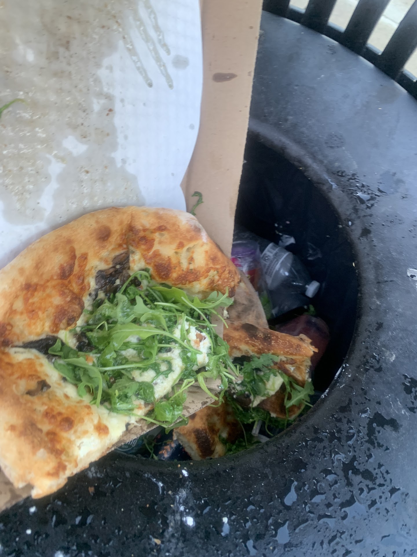 I brought it back again and said “okay, it absolutely has oil on it and it tastes like truffle oil. You can SEE the oil on the arugula.” She insisted it was olive oil they had doused the pizza with (which would be an odd thing to do anyway, but no, this wasn’t olive). I said “okay. Put it this way: I don’t like the pizza and I can’t eat it.” She just smiled and said “well I made sure it wasn’t truffle.”