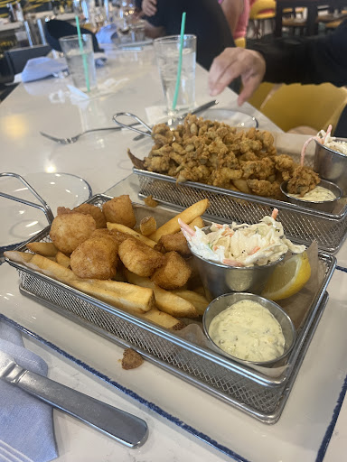 We recently dined at Legal Sea Foods in Hingham and had an overall enjoyable experience, but there were a few notable hiccups that I feel are worth mentioning. First, the restaurant was clearly short-staffed, and we appreciated the hard work of the team, doing their best to keep things moving smoothly. We were patient with the delays and understood the situation, but one aspect of the meal was a bit frustrating—the lack of timing when it came to the pacing of our courses.