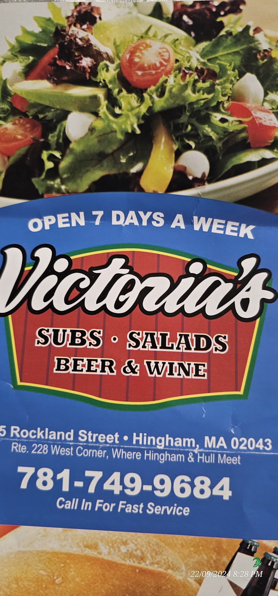 Read moreI Love Victoria’s Subs. I have to go up to Massachusetts on Tuesday 12/14/21 to help with family issues😜, but the only thing I want to do is take tha Lahb-ster Express from Logan Airport to Quincy Haaahr-bor then shoot down 3A towards Hull. The tortellini salad is great, the meatballs will definitely hang lower in your bag than your used to😏, the CheeseSteak is worth the diet your wife will put you back on, but my favorite is a whole Seafood Salad hoagie with extra Seafood, American Cheese and Mayo! Nothing says fishing for strippers off HULL GUT at low tide like the Seafood Salad Sandwiches, and nothing reminds me of my love for the Bo’ Sox like explaining why I’ve got four sandwiches from Victoria’s in my carry-on going back to Florida. Don’t worry about the service they work hard and fast! Smile it’s part of the beauty of a trip to Nantasket Beach, in...