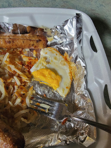 And to top it off, I ordered 2 eggs over easy. And one of them arrived broken and FRIED (see photos). Like, they clearly were like "whatever just send it." I got through half of it, took the picture, and was like: "this is going to the dogs."