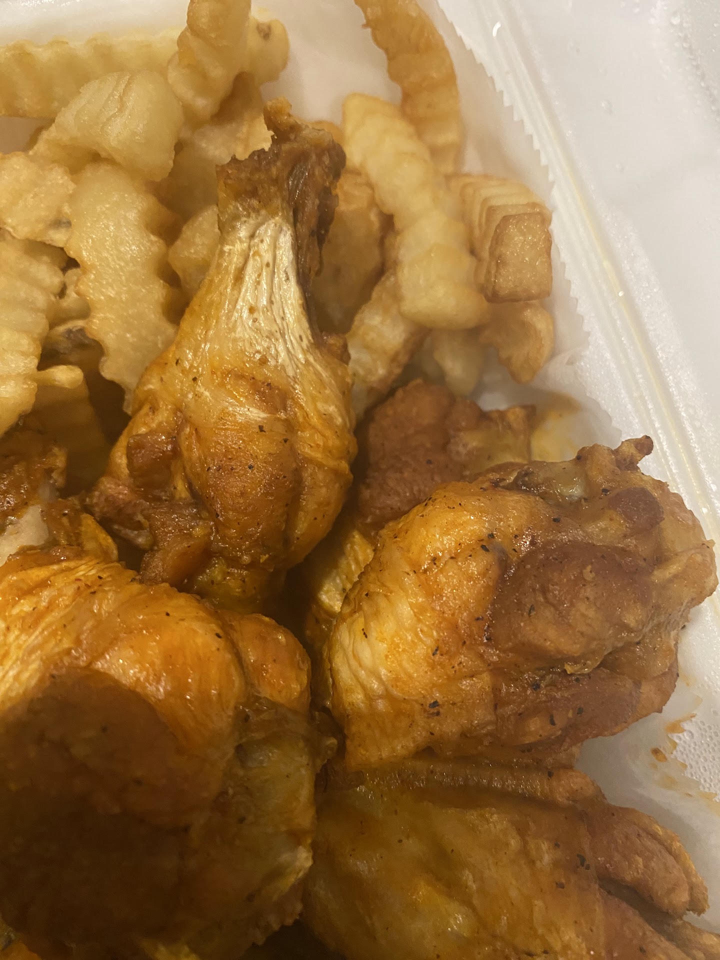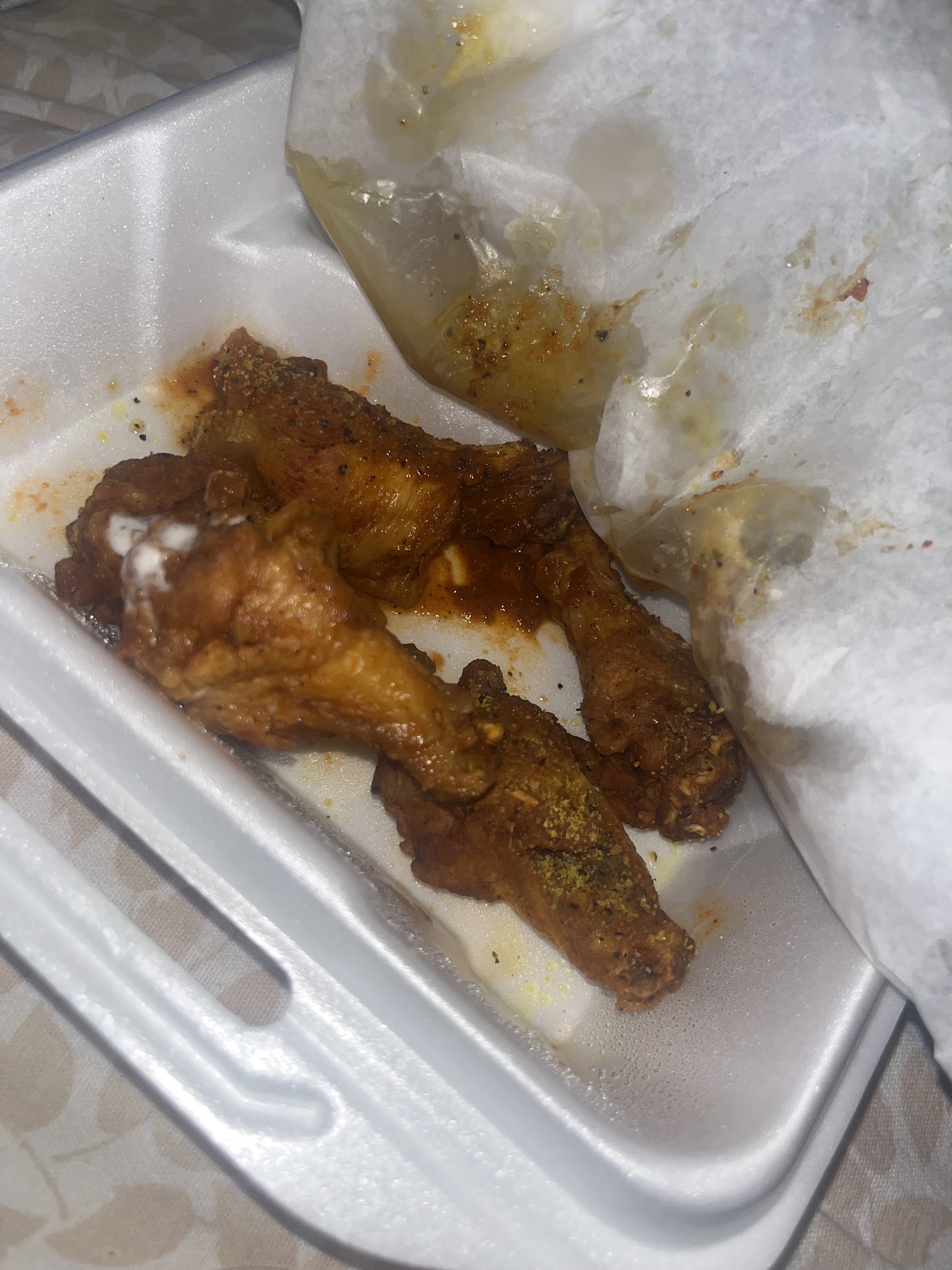 Ā Ā Ā Read moreHadn't eaten all day. Had my son call in my normal order. Was in the middle of working, took a 15 minute break to grab the order. No time to look while there, I paid and made it back home to work. I open my order its all wrong. I ordered all flats ( I have braces) it was all drums. So because my shift doest end until 8 (currently 3pm) I called to see if the order could be remade. Apparently I caught the owner. She asked me to bring the food back and she'd replace it. So STRANGE. So because I cannot leave my desk I was going to have my husband swing by on his way home. She goes back and forth about bring the wings back and says the lady who took the order forgot to let them know all flats. Who ask you to bring food back? How disgusting and how dare you argue with me that you'll exchange the order! DO these look like clothes to you. Were you going to serve someone wings that I brung home! So since I have to stick with the order because I cannot run back through 4pm traffic to drop off wrongly served food. After coming here for 8 years. I didn't know your customer service was this terrible. Do better.