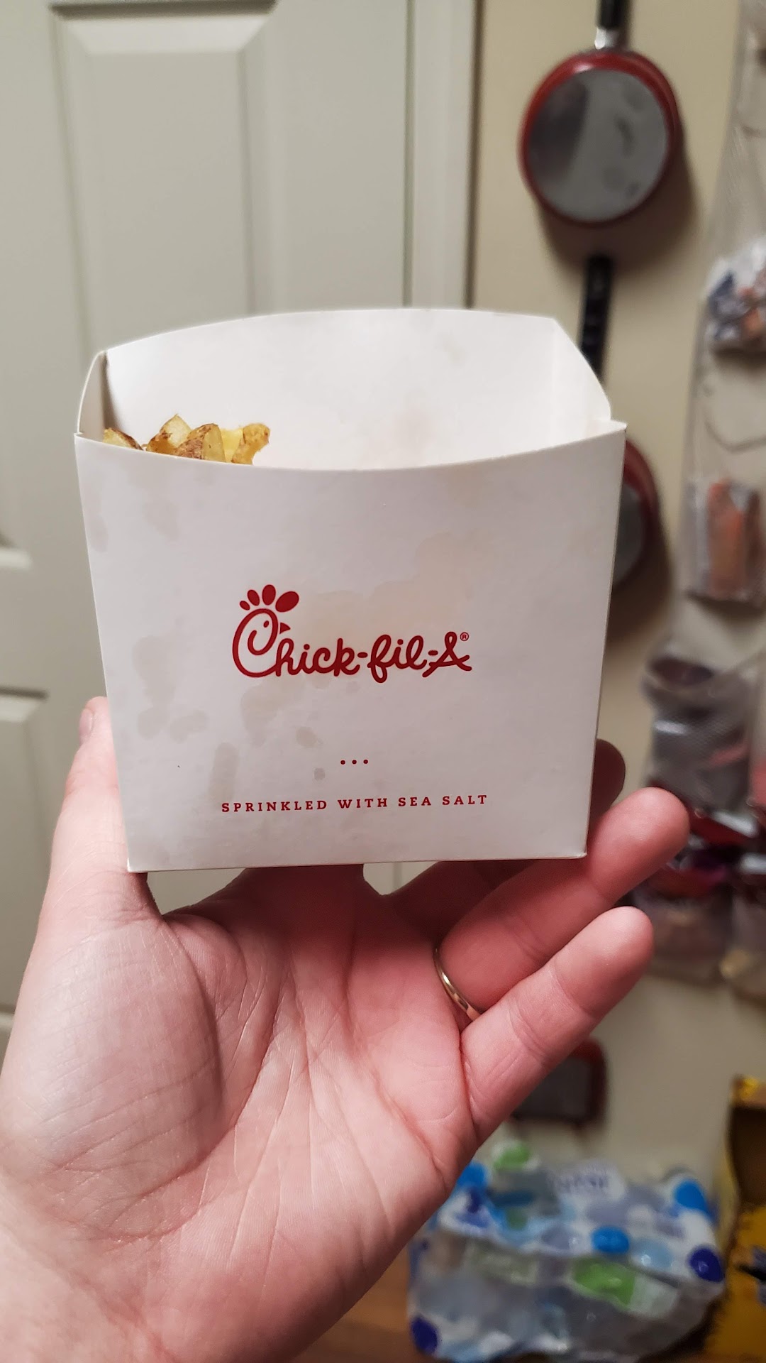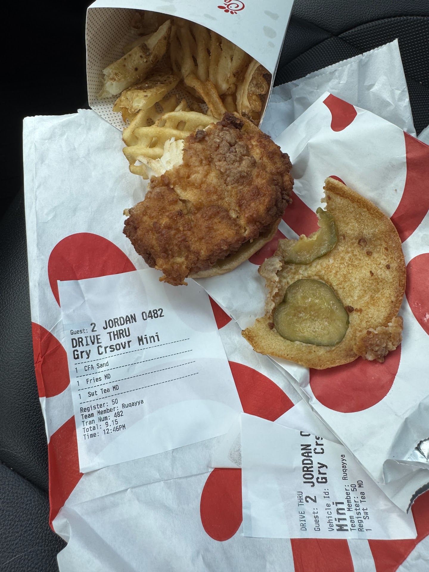 Read moreListen I love CFA, but I came to order through the drive through since it seemed easier with kids in the car. For starters the girl who took my order had a pissy attitude, I finally get my order taken and I paid and was told to drive around. I drive to the window and the girl at the window tells me to drive down to one of the red poles passing the drive through window as they were waiting for “fresh food”. I drive down and I’m waiting there for 5 minutes and she comes back and tells me to drive forward again to the brown sign by the dumpsters, so I do just that. I’m sitting there waiting for another 10 minutes, as I’m waiting there for my food every single car behind me is just driving off, which I’m getting irritated at this point. I get I ordered somewhat of a big order which was 2 of the new pretzel meals 2 spicy deluxe meals and 1 kids meal, but I’m sitting here watching through my mirrors and lots of cars that were leaving behind me had received what seemed to be bigger orders as I saw them walking to a truck with 2 of the big white bags that they usually give for big orders. So by this point I’m beyond pissed cause apparently we were the only one waiting for “fresh food” as everyone else drove off with old food I guess? So I go inside and ask for my money back & everyone just seems confused looking for my order, again another wait just to get my money back. I never leave reviews but this...