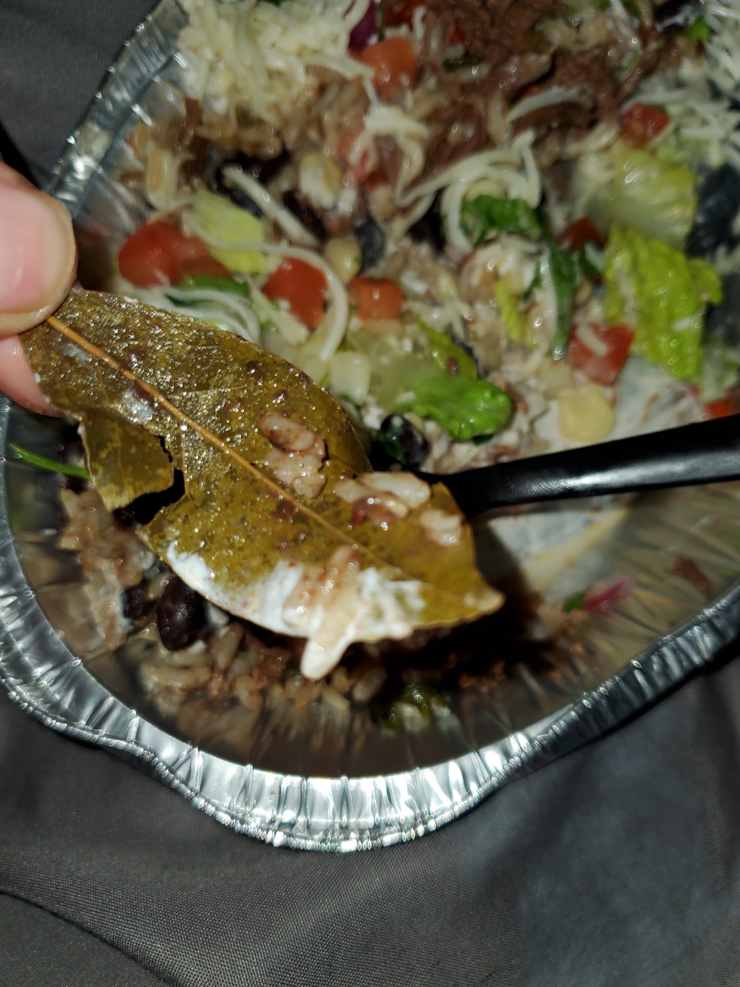 Read moreMy wife and I ordered a to-go dinner from Chipotle tonight and we excited to enjoy our favorite dishes: a Steak Bowl and a Smoked Brisket Bowl, complemented by large chips and queso blanco. Unfortunately, our anticipation quickly turned into horror when we discovered a green bug crawling out from under the lettuce about halfway through our meal.