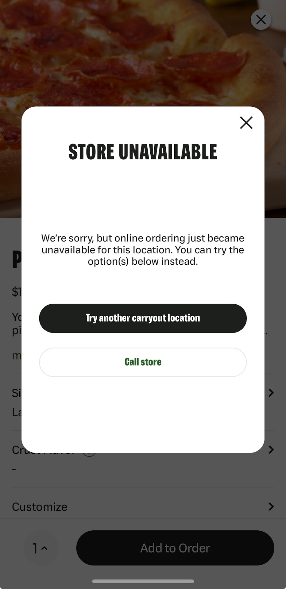 Read moreThis is my home's store. Been here 22 years. I've had issues in the past, but today was the worst. I wanted to order delivery, but I hate ordering by phone through India. So I used their ONLINE Order. My address was correct , my phone number was correct, as was my email. After the promised time plus 20 minutes, I checked "where's my pizza" it showed still at store. Store is nearby so I went there. On my way, I called India to get to my store. Basically, they told me they had no orders for my name or address. Yet they showed it at the store. I had stopped at a local gas station at this point and called India back. They kept wanting to transfer me back to the store, which just told me they don't have a pizza for me. I went on to the store, and they said they found it in the carry out area DESPITE showing no orders from me or my address. By this time I was just too angry. I told them to cancel the order. My only issue now is I paid over Venmo. We will see if I get a credit back. I made them print me a...