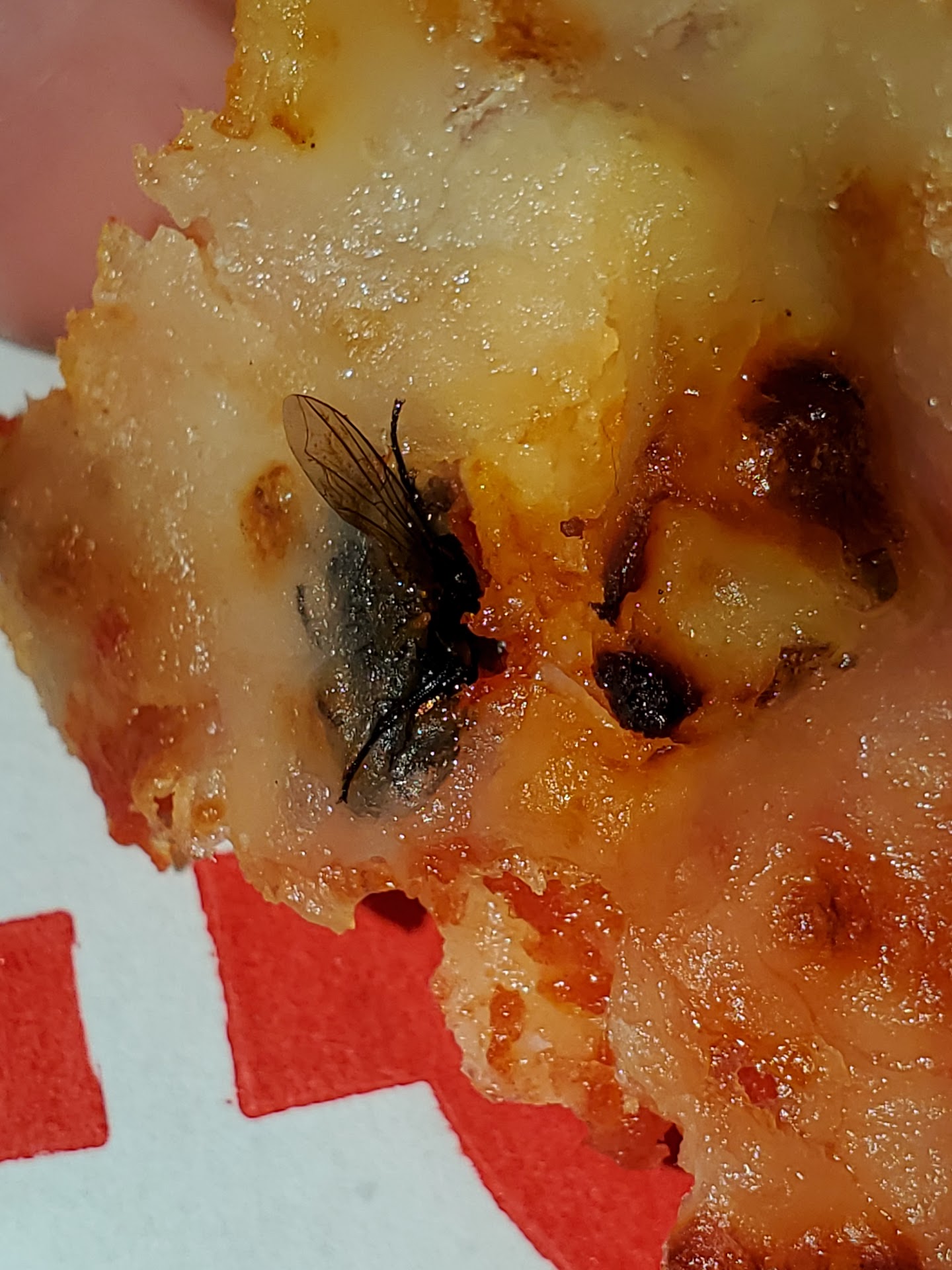 On Tuesday October 1, 2024. I order the back to school special 9.99 one topping pizza. The first pizza was a cheese pizza, extra sauce light cheese. The second pizza was half black olives and half chicken. My daughter ate the cheese pizza and woke up with a stomach ache and throwing up the next morning. I ate a slice of the chicken and a slice of the black olive. The next day, my OTHER daughter warmed up 2 slices of the chicken side of the pizza only to find a freakin FLY 🪰 baked into the pizza. Omg........I called the store location(dallas nebo) ask to speak with a manager. I ended up talking to a team leader, whom I thought was the manager. Explained to her what my daughter found in her pizza the next night after warming a slice up to eat! As u can see in the photo, that the fly was literally baked into cheese. She proceed to say, we can NOT give you a free pizza or money back because it was not reported the same day!!!. WHAT???? I explain to her from the very beginning that. I'm not reporting this for a free pizza or money back! She felt like she had to consistently reiterate that!! I keep reiterating that I don't want anything free!!!, I just wanted to make them aware about the fly my daughter found in the pizza that was sold to me the night before. I ask for the owner of that particular franchise and was given the name Troy Tucker which she was hesitant to give me. Of course, she had no information to give me to get in contact with him. I then ask for a general manager information, she gave me the name Alessa. Who knows. It could be false information. But after all that, beware of this location. They WILL NEVER EVER GET MY BUSINESS AGAIN!!! No wonder they get a 3.4 in reviews!!!! Oh yeah I forgot, the team leader did inform me that pest control came today(the day after the fly was in the pizza) So she knows that have a insect problem!!! Smh.....shame on them.