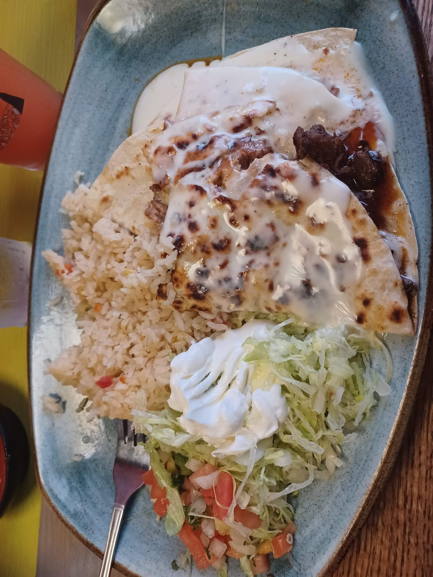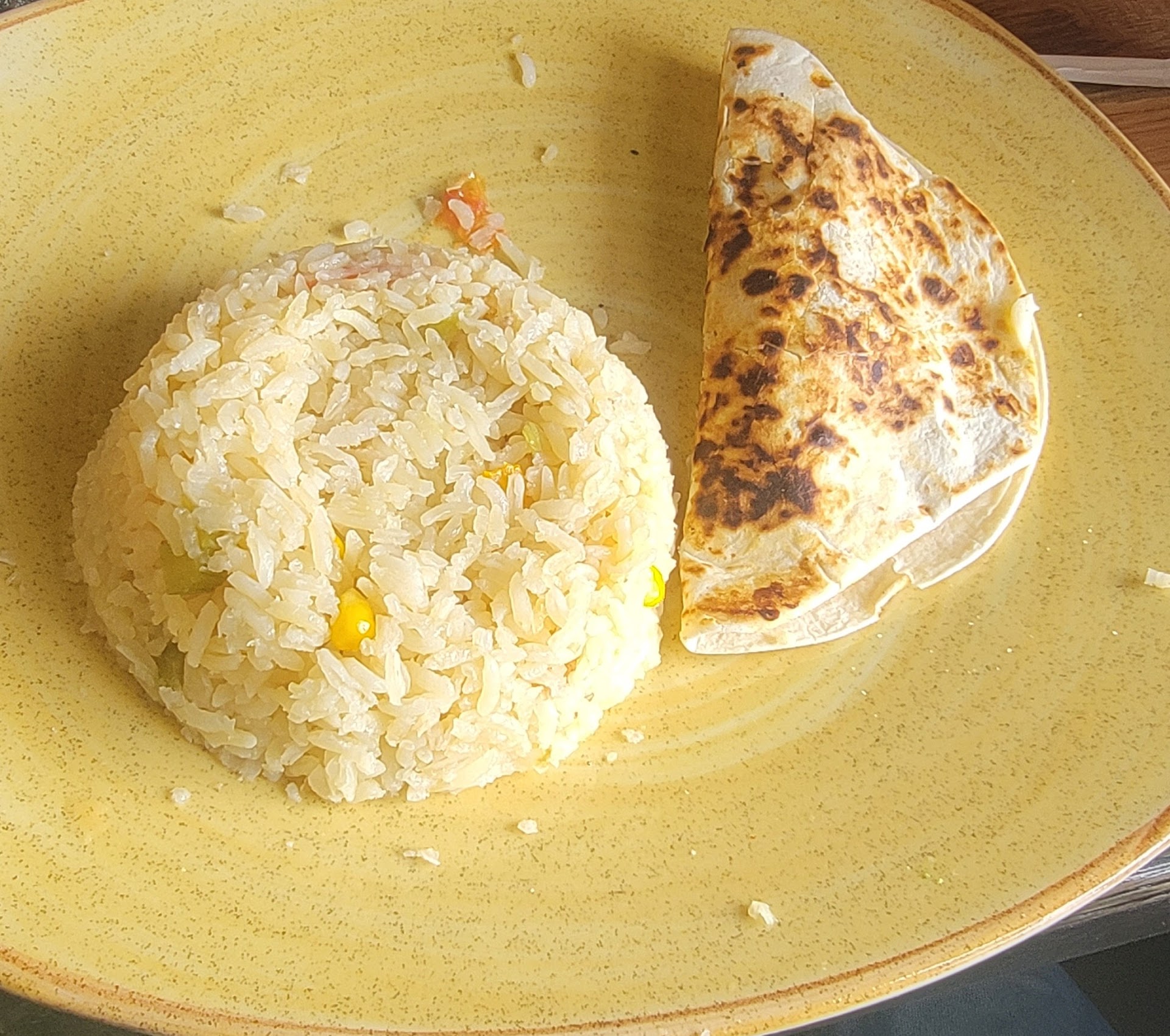 Food-wise, we started with queso calamari. Solid choice. I got the quesabirrias, and my friend opted for the fish tacos. She described her tacos as "good but basic," which is code for "meh." My quesadillas were tasty, with or without the sauce, but my quesabirrias had a spicy kick that wasn't advertised. Surprise spice levels, anyone? My friend’s sides of rice and beans were so bland they practically apologized for existing.