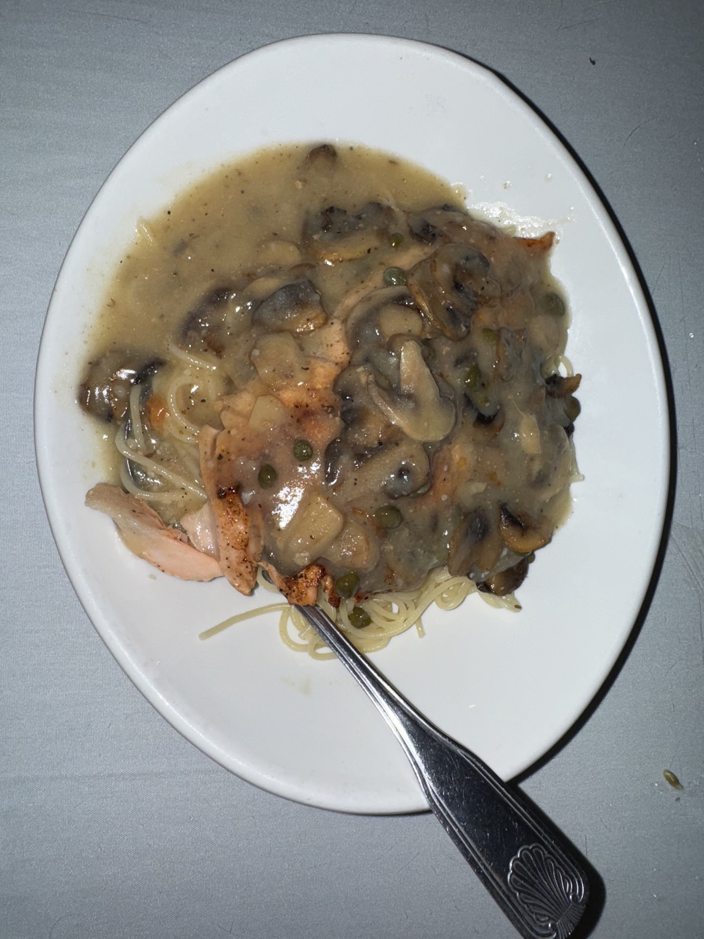 My wife could only eat a couple bites of her salmon piccata. She let me know she could not eat anymore or she was going to feel sick. We could kind of tell something was off because the sauce looked slimy, and when I tried it, it was gross. The flavor was alright, but the huge disappointment was how slimy and goopy the texture of the sauce was. You could taste the preservatives in it. It was obvious that it was frozen, then heated up, and poured over the dish. A dish like piccata should always have a fresh sauce; it’s not even that hard to make.