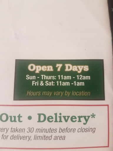 The food is good when it is not over cooked. I placed an order for pick up and im usually quoted about 25 mins, my boyfriend goes into the restaurant to pick up the pizza and he was in there for another 30 mins because the delivery driver took our pizza for a joy ride..the manager made him wait for the driver to bring it back and then she argued with him that it was not luke warm after being out of the warmer for almost an hour. The service could definitely improve..