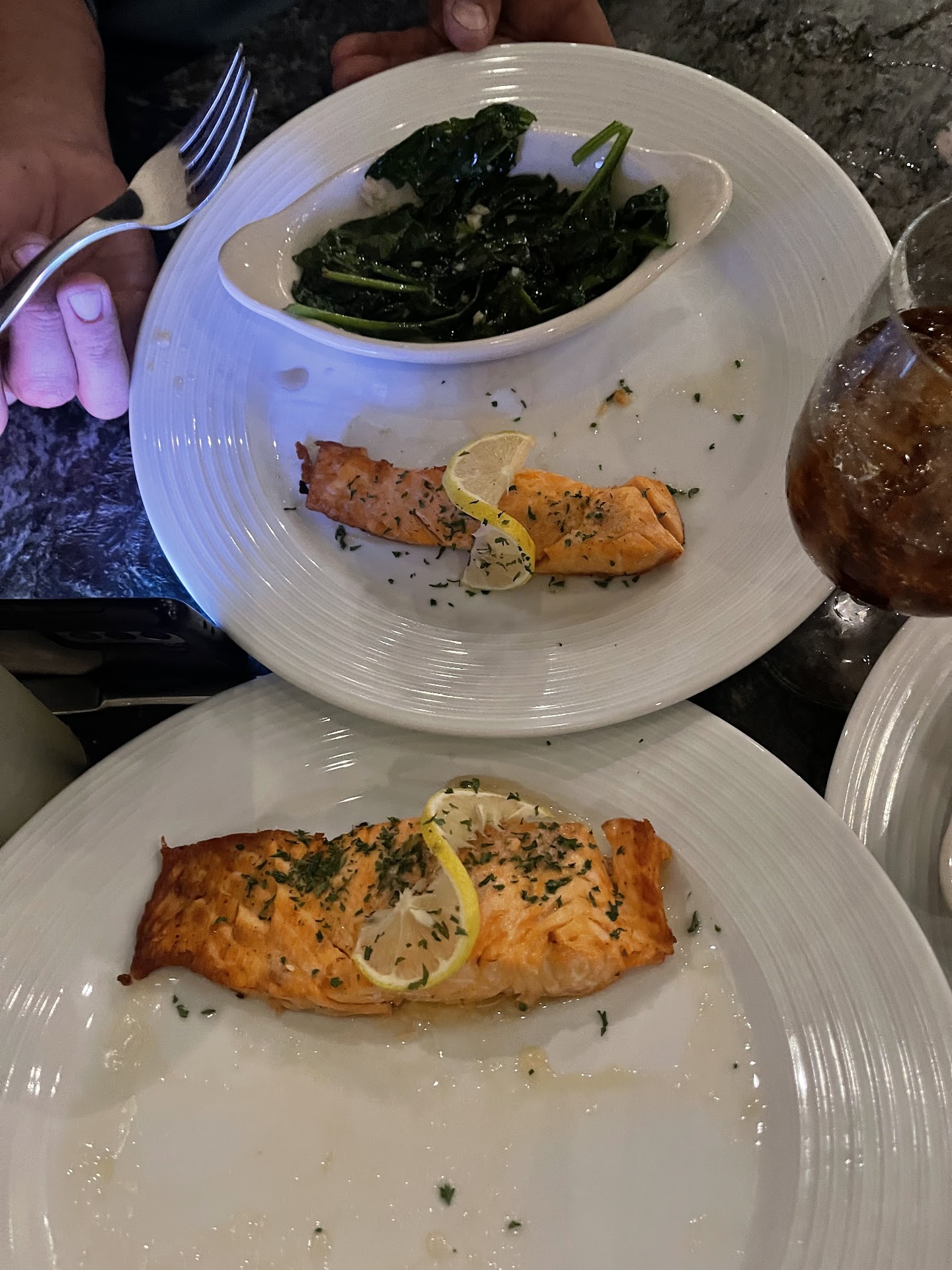My salad had several chunks of ice in it. My lamb was ordered medium rare and it was served well done. We had a large party and no one’s meat was cooked correctly. Several meals went uneaten after one bite. No one came to check on us. The manager didn’t even bother helping even after I pulled him aside and asked him to help.