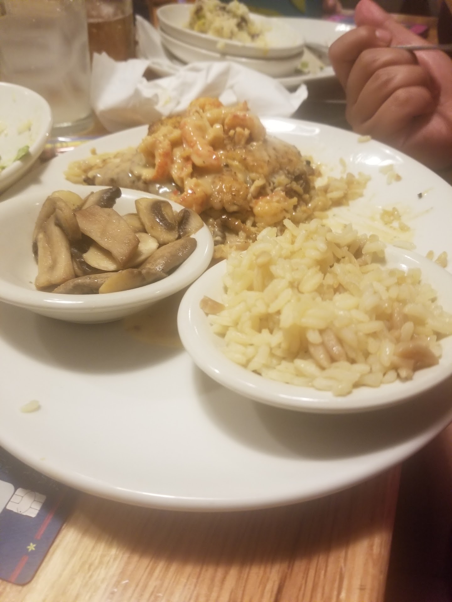 Read moreThe original waitress we had was horrible. She didn't refill our drinks, she neglected to tell us about anything they were out of until we had already ordered it or had received the food with missing items. She never brought any of our food and neglected to bring some of our drinks as well. Our food was delivered by a combination of 3 other servers and the last person to receive their food was my 2 year old godson and neglected to let us know that his plate was piping hot. Our waitress also disappeared until the end of our meal due to personal reasons in the workplace but in the end did apologize. We were partially taken care of by another server but she also had her own section to tend to and was not able to give us the service she wanted to due to our original servers disappearing act. The food we did receive was very good, and the food we ordered for my sister towards the end of our meal was delivered in a timely matter thanks to our newer waitress. The manager though, never even made an attempt to speak to us or apologize in anyway, he simply took our apatizer off of our ticket in order to "solve the problem" but only because our newer waitress requested it. We might go back but if we do we are going to request the server who saved our...