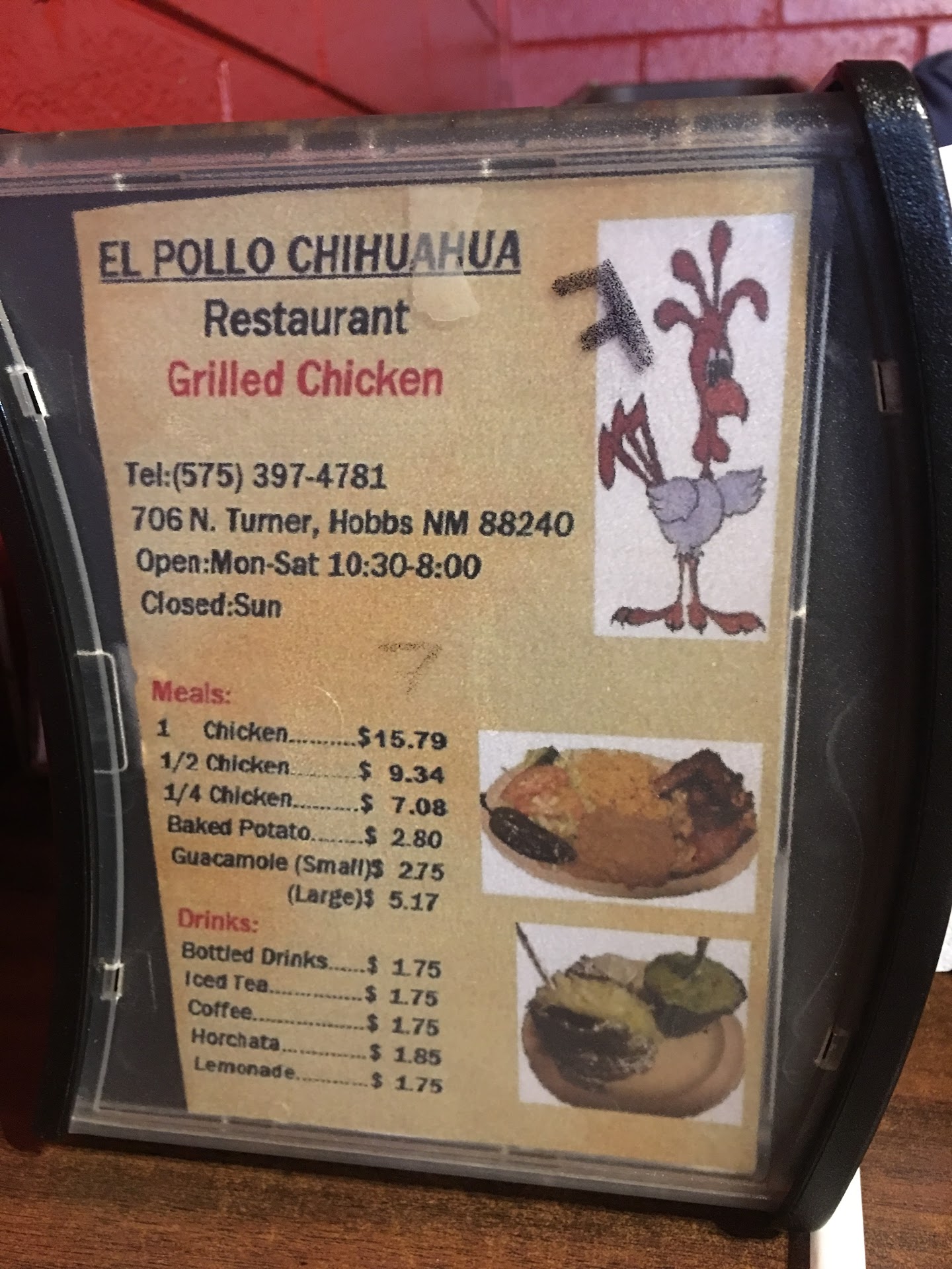 The menu was chicken. A quarter chicken, a half chicken, or a whole chicken, with various promotions for each.