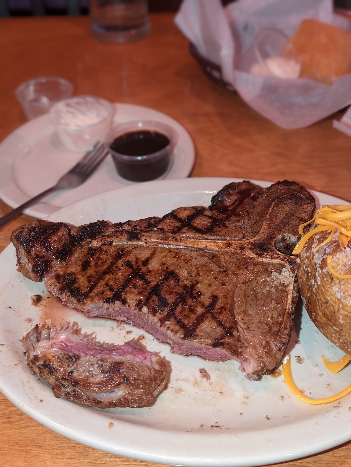 Read moreWaitress wasn't very attentive, speaking into her notepad when she introduced herself with the mask on made it very hard to hear her name eventhough i was right next to her, we were a party of 6 so i know the rest of the party didn't catch her name. She was very rushed and at first i thought, maybe she's really busy but just a few minutes later i see 6 servers leaning by the P.O.S. when our apps came, we didn't have utensils or plates and she still asked if we needed anything. I kept putting the empty plates on the edge to make it easy for her to get them when she came by but she didn't pick any one of them up, we had to keep asking for refills and bread took forever, my ribs weren't the juciest and my chili was cold, my husband ordered a med well steak and it came back med rare, she didn't bother to ask. Every time i asked her for something she'd cut me off mid sentence and tell me why she couldn't do it. Very rude in my opinion. Busser didn't bother to pick up the plates either eventhough he came by our area several times. Next time i think we'll do takeout and have a better and cleaner...