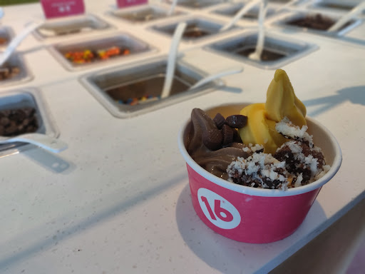 When 16 Handles first came to Hoboken, I was jazzed. I went weekly, often more than once. It's never been what you would call economical, but I always told myself it was an aid in portion control. Over the years, I noticed the price going from not cheap to rather overpriced, but I still stopped in for the occasional indulgence. However, after my most recent visit - I'm sworn off for good. It was just after 9 pm so I called first to see if they were open due to adjusted 'COVID' hours. The man who answered the phone said they were officially closed but if we could get there in less than 10 minutes he would stay open, which was kind and it impressed me. I live less than 2 blocks away so we ran out the door in the flash. We arrived and half the machines / flavors were already off and half the toppings gone, but hey...beggars can't be choosers, right? So we got a little something to satisfy the sweet tooth, but upon check out the register rang us up at nearly $20 for our 2 mediocre cups. I asked him to double-check....that couldn't be right? He said it was and was rather stone-faced / not very friendly. We should have walked out but I felt a bit obligated since he had stayed open and frankly, I just wasn't processing the ripoff quickly enough. Anyway, we paid and left and the regret follows me. It was also quite melty, not even up to the usual par of tastiness. Pics...