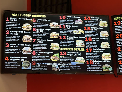 Their menu is actually huge, with 34 varieties of delicious burgers made from 100% all-natural beef, with their toppings and locally baked buns. The selection is beyond what one can imagine. They also offer chicken sandwiches, wings, hot dogs, salads, and sides like fries and onion rings.