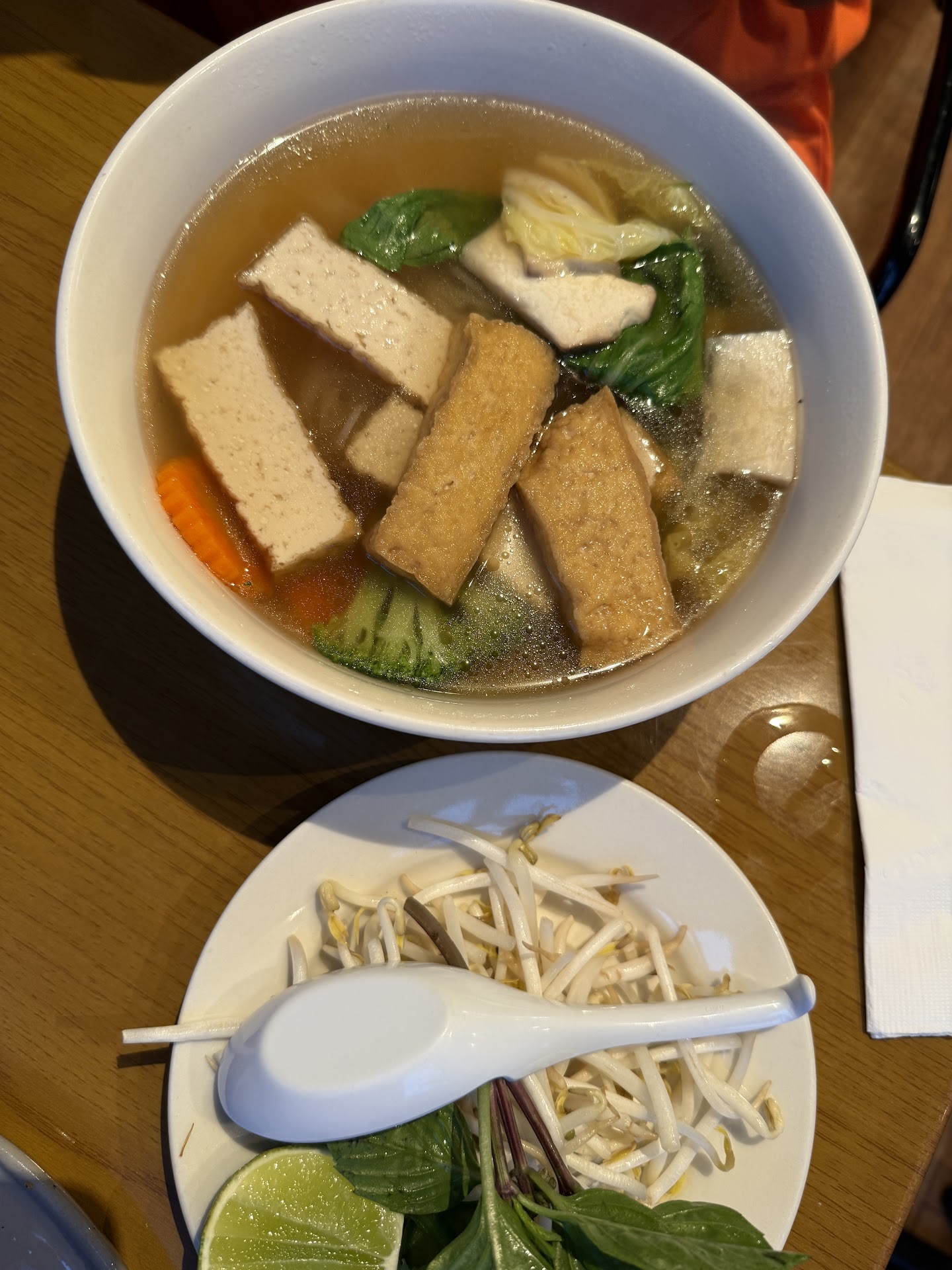 Read moreAmbiance (4/5): The interior is minimalistic and tight. However, the venue is bright, clean, and cozy. The tables sit on top of each other. Service (4/5): We walked in around 7:30 on a Saturday and luckily was seated immediately but the restaurant was at full capacity. There were 2 people on the floor running from the kitchen and manning the front so they were absolutely slammed with the rush hour of evening peak dinner time. Scan the QR code on the check to pay instead of waiting for them to check you out. Banh Mi (4/5): Overall, the banh mi was delicious. The lightly pickled carrots and daikon gave the sandwich a crunchy bite among the creaminess from the mayo. My qualm was that the bread was a bit dry and chewy at the same time. Wish the meat was more flavored and had cucumbers. Pho (5/5): Wow the broth has so much flavor, depth, and umami! The bowls were very generous on the portions of noodles and protein ($15-16). The rare steak cuts were silky and soft. The side platter came with bean sprouts and mint. Bo Hue (unrated): This was not for me as the dish usually contains some shrimp paste (I could taste it). The spice level was great and had a ton of variety of proteins. Warning: Sadly both my boyfriend and myself had stomach issues for the remainder of the night. While we did not experience pain, rank gas and a few trips to the bathroom for relief (Dined...