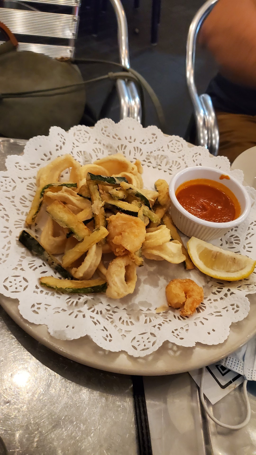 I ordered the Frittura (fried calamari, shrimp, and zucchini) and the Pizza Pala. The waiter said he had to check if they could make that pizza. Cool, no problem. Then my girlfriend pointed out that he repeated my order as āBurrataā instead of Frittura. When he came back, he said they couldnāt make the Pizza Pala, so we switched to a Margherita and a Diavola pizza. I clarified the Frittura again, and he confirmed.