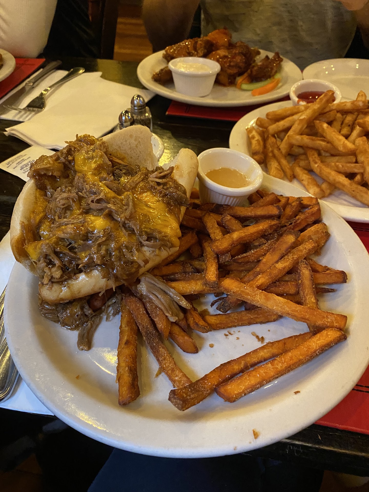 Ā Ā Ā Read moreMy 7 friends and I left the nearby Gravity Vault and walked in here without a reservation on a Saturday afternoon when the place was packed. I expected we would be turned away, but the staff immediately opened up the upstairs party room and got us seated and settled with glasses of water. The service was great and we loved the famous buffalo wings we got as an appetizer ā nice and crispy and super flavorful! The french fries and sweet potato fries were next level and some of the crispiest, best ones Iāve had in a while. We also couldnāt get enough of the Moon Sauce that came with them, either. The pulled pork I got was tasty, too. I also enjoyed my Magners ($7) and was glad they had cider options on the extensive beer menu! Lots of options on the menu whether you want a sandwich, burger, or even a stir fry or shepherds pie. On top of that, the prices were pretty reasonable ā about $15 for a pulled pork sandwich that came with fries! For Hoboken, thatās an awesome deal. I would totally...