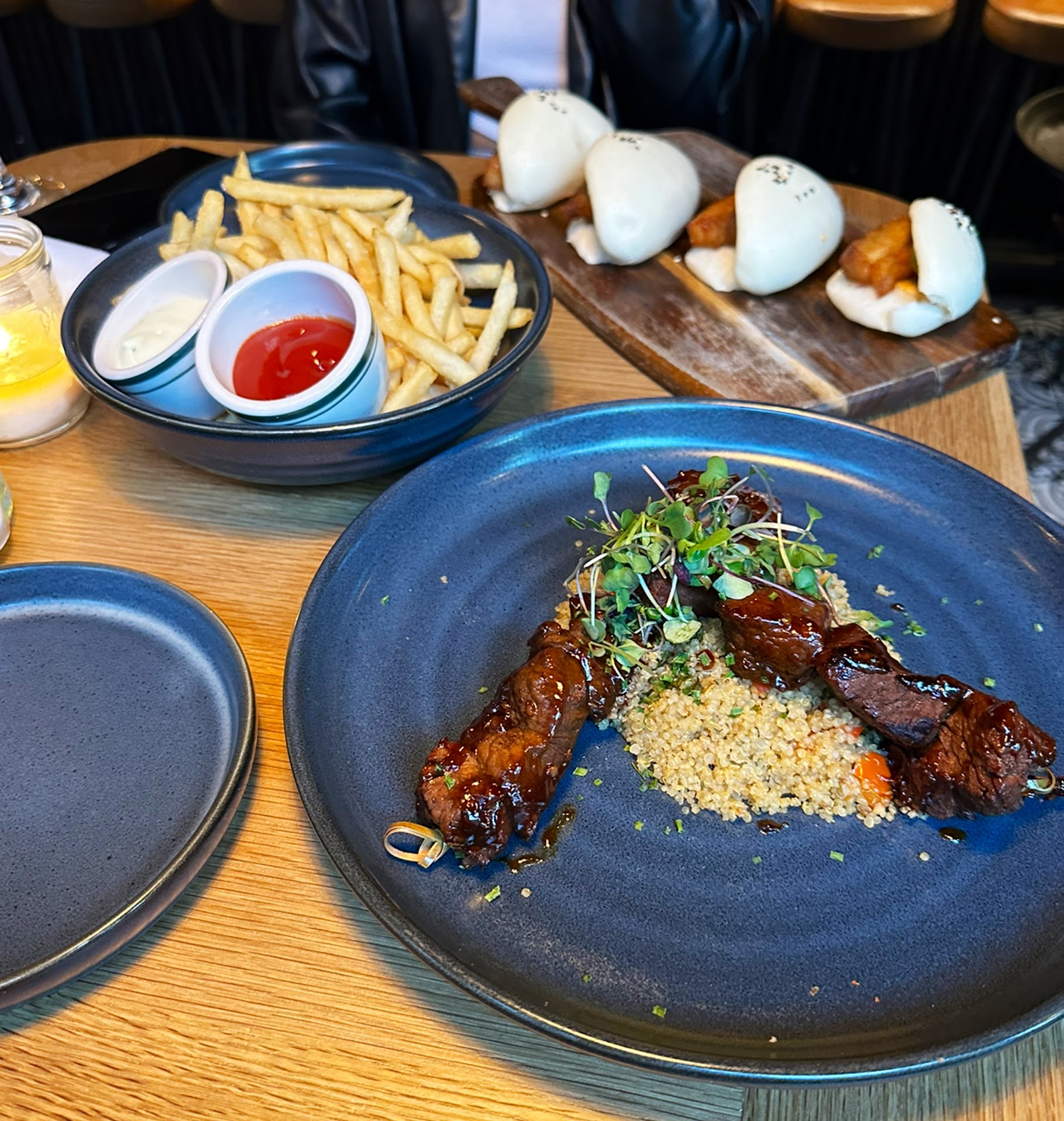 We also ordered food. I got the fried chicken sandwich and hubby got the steak sandwich. Both came with fries. We also ordered the brussel sprouts, which were amazing. I thought the fries were delicious and crisp like a McDonaldâs fry, which I loved because at many other places, the fries feel like a soggy afterthought. The chicken sandwich was double stacked and well presented but I do wish it had more seasoning. My husband didnât say anything about his food (heâs not really one to review) but he devoured it and was full, which days a lot. I may try the steak sandwich next time.