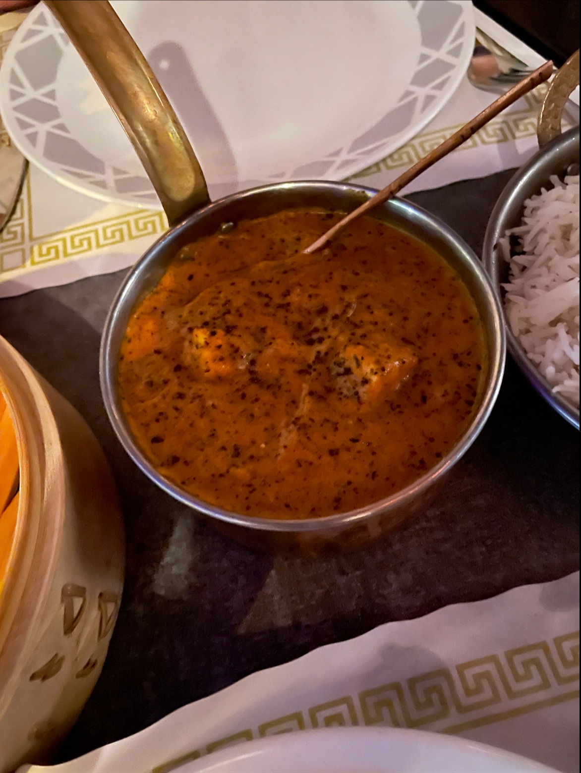 Service: This is definitely an area where this restaurant excels. Very few Indian restaurants provide this level of attentive service. We visited at 11 PM on Saturday, and while I could see they were starting to close their kitchen (many restaurants would not have allowed us to order this late), they politely asked to take some time and order all at once. The server and staff were friendly and polite, provided recommendations for food/drinks and the owner (or the manager) himself checked with us a couple of times after food was served, and asked for feedback on one of the specials (paneer kali mirch) we ordered from their menu.