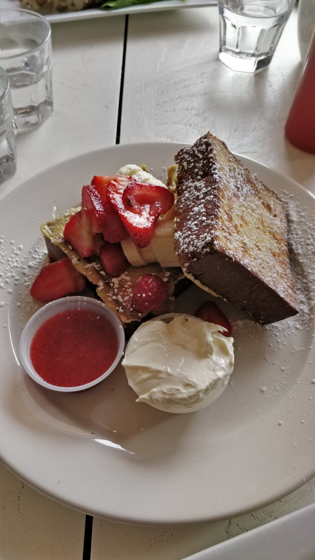 I did appreciate the hot sauce they had on the table, in fact, it was the first hot sauce I’ve ever taken a liking too, but La Bouche didn’t make it, Cholula did. And speaking of which, La Bouche didn’t make any type of “sauce” to drizzle over the farm field greens that were strewn about over my avocado toast or collected in a sad little corner on the plate of my boyfriend’s egg Benedict. Not even EVOO? Come on, no one likes dry mixed greens straight of the box. This makes the dish look unfinished!