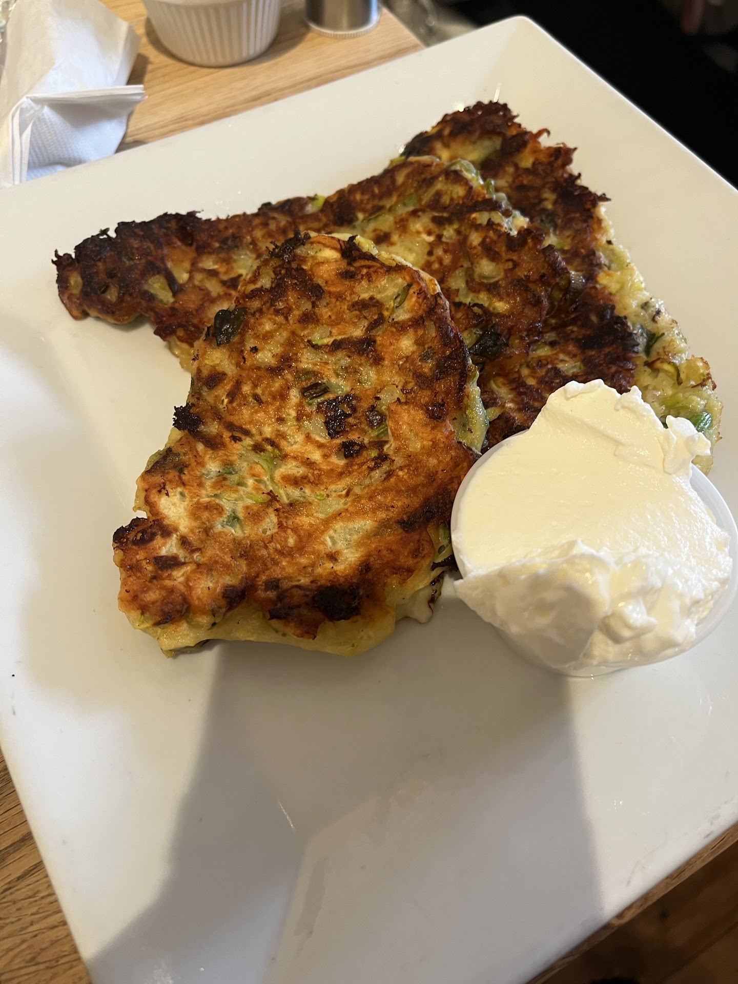 We also got the zucchini pancakes which were delicious and probably the best item on the table. But then why don’t they put as much effort into their main dishes? These were more like a shareable side.