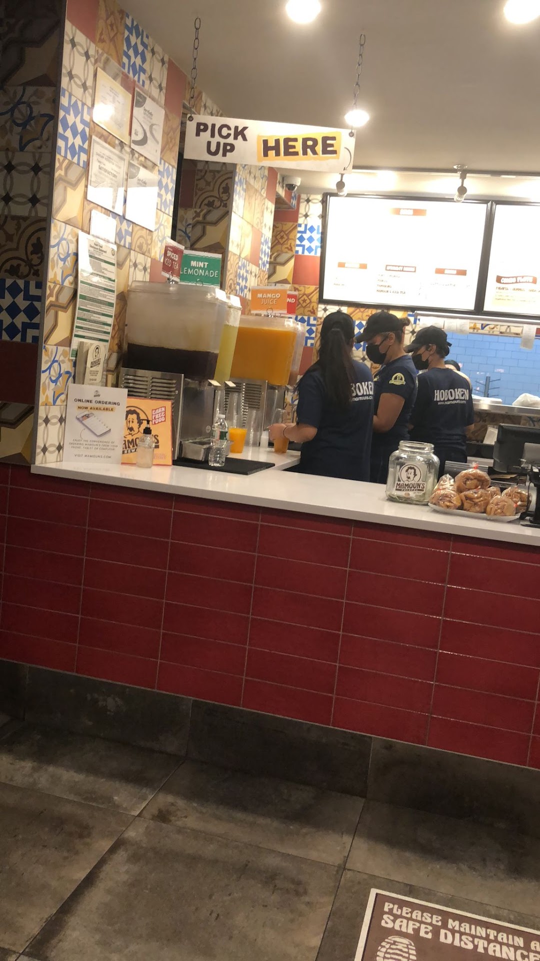 Been going to Mamoun's and have been to all of their locations even a few that are closed now. I was going to Mamoun's the original location since they opened in the village in NYC. I live in NYC but shop in Jersey it is safer. This location is small but not as small as the original. And you can walk right in. It is the oldest falafel restaurant in New York and one of the first Middle Eastern establishments in the United States. What I like about this location are the drinks. They do not have these drinks in the city. They have a mint lemonade that my husband likes a lot and I like a blackberry juice that I LOVE! I looked on menu pages and they dont have it listed. But it is on Google. I am allergic to Tahini though I love it! So the meat is too dry for me. It doesnt seem as moist as the original location but I was not always allergic to Tahini and used to have it on my meat so maybe the sauce made the difference. All in all really great food prices and location =!
