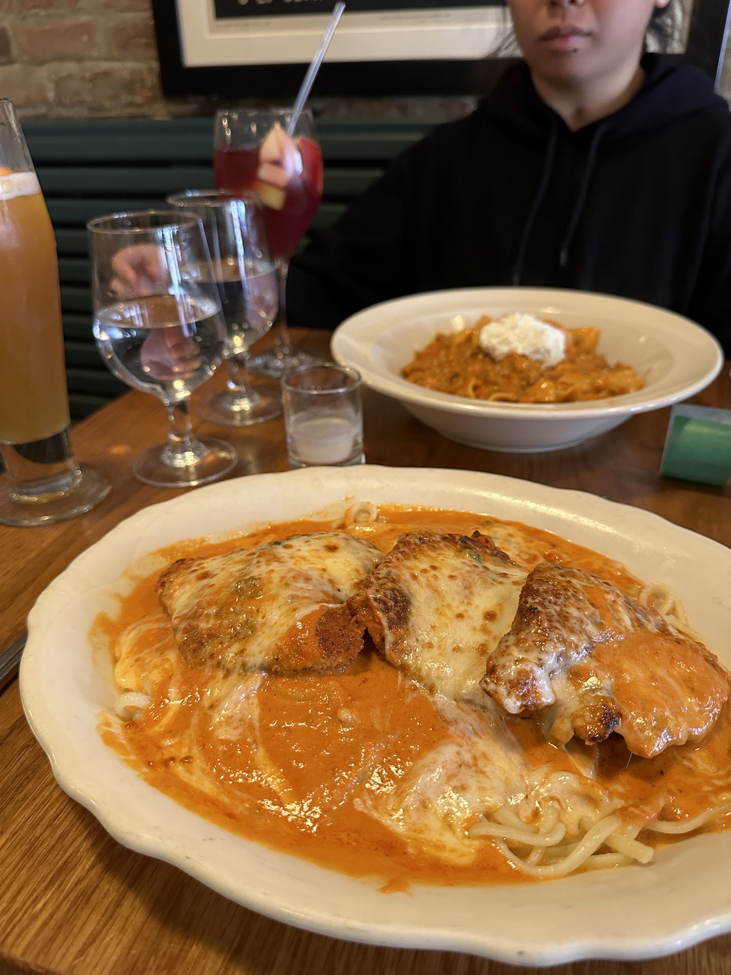 We ended up asking where the food was after 60 minutes post ordering. The waitress told us 5 more minutes which was correct. The issue is 2 out of 4 of the meals were incorrect. At that point rather than say anything to get it fixed we were just going to eat them because we had been waiting so long and were hungry. The waitress noticed the meals were wrong and came over and apologized. The manager then came over to interrupt our meal twice. The first time to see what happened, and the second time when the bill came. When the bill came he pointed out that the waitress put the orders in correctly and the kitchen screwed up...okay. Like we didn't care at that point. He pointed out that he didn't upcharge us for the more expensive sauce/incorrect pasta on the meals. That was weird, and annoying. You gave us the wrong food, didn't take anything off the bill, didn't fix it, and just pointed out that we aren't getting up charged because your kitchen messed up. Thanks...