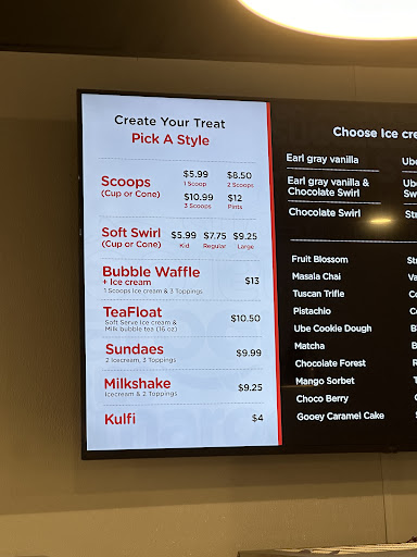 Coming back here to re-review now that I’ve visited a few times. Since I first visited last year I have just been disappointed more and more with each visit. In my pictures you can see the first review I left (5 stars) with the two pictures of the Ube ice cream based desserts we had which were amazing (went on 6/16/24). On my second visit to the store (9/15/24), I ordered the same ube ice cream but this time as a bubble tea and you can see the ice cream is completely different. I hardly tasted any Ube flavor, instead it tasted like the whipped icing on ice cream cake. SO BAD. I barely could finish it. I went back again a couple of weeks ago (6/8/25) to give it yet another try because I really wanted to like this place lol. I asked to sample the Ube and it was the same whipped cream tasting Ube as before so I skipped it and got the Thai tea bubble tea beverage. Sadly they didn’t put any of the Boba in it - one of the main points! It was clear the employee was not familiar with the menu as she kept looking at the pictures of what people were ordering. She also kept burning the waffles for an order and it slowed down the line a ton and eventually she told the person they had to switch their order. Because we waited for so long, I didn’t want to complain about my order missing the boba and just left with it as is. Although this place was great a year ago, I don’t plan to go back. Felt ripped off and it’s just gone...